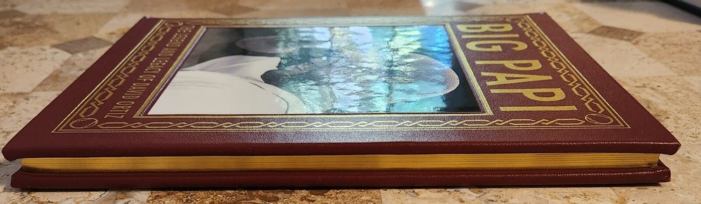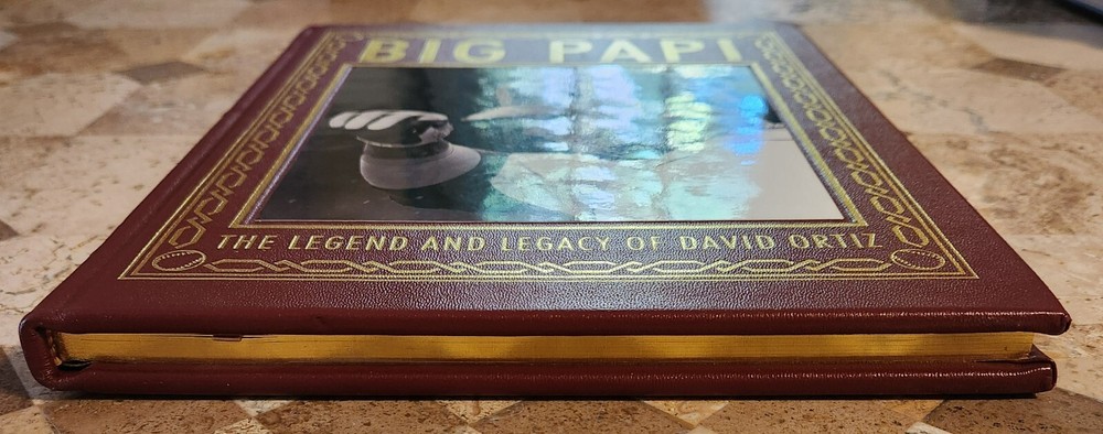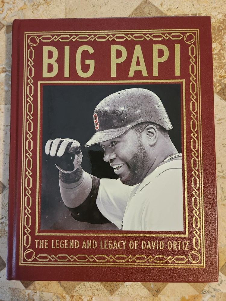 Fine copy of Big Papi, The Legend And Legacy Of David Ortiz by The Boston Globe and Triumph Books. Great condition!! No writing, marks or defects. Collector's Edition Fully bound in genuine leather. 22kt gold deeply inlaid on the "hubbed" spine. Superbly printed on acid-neutral paper that lasts for generations. Sewn pages — not just glued like ordinary books. Handsome moiré endpages and a satin-ribbon pagemarker. Gilded page ends. Look for more Easton Press listings coming soon.