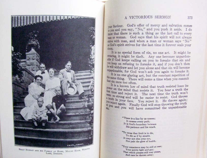 Heritage Village Church & Missionary Fellowship, Inc., Charlotte, NC 432 pp, 6 1/4 x 9 1/2 "Wm Ashley Sunday (1862-1935) was an American athlete who, after being a popular outfielder in baseball's National League during the 1880s, because the most celebrated and influential American evangelist during the first two decades of the 20th century." --You must see my Ebay Bookstore-Great Pandas At the top of this page click on: Visit store. Sort: ending soonest, to shop by orderly categories.