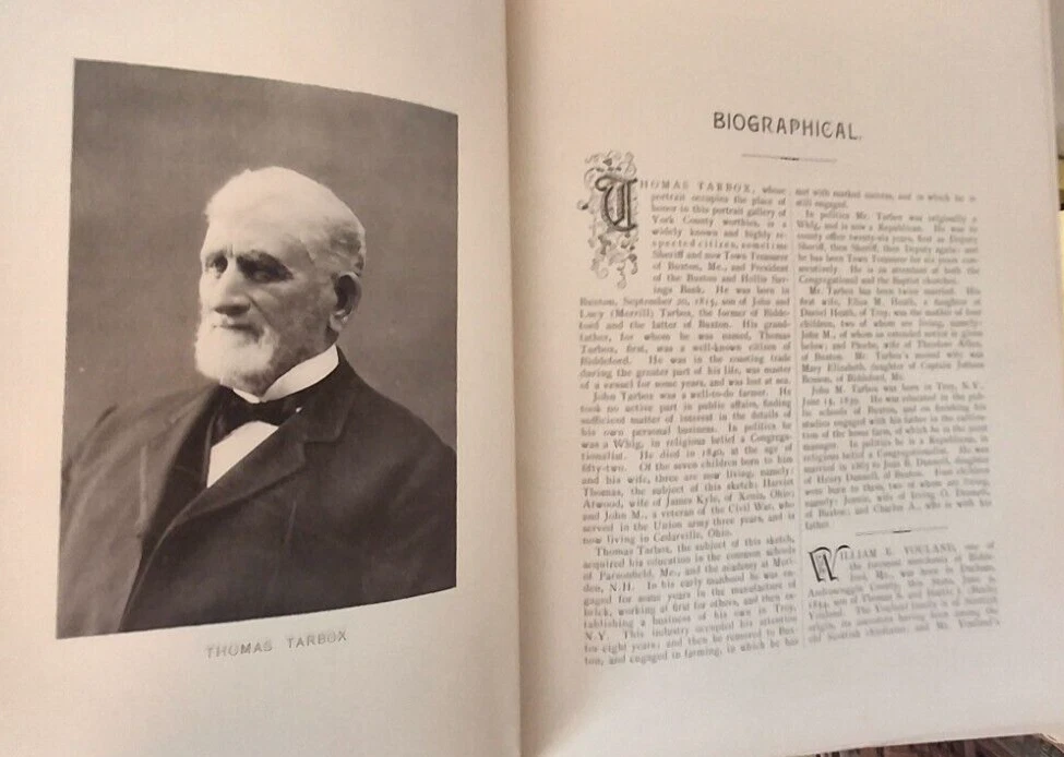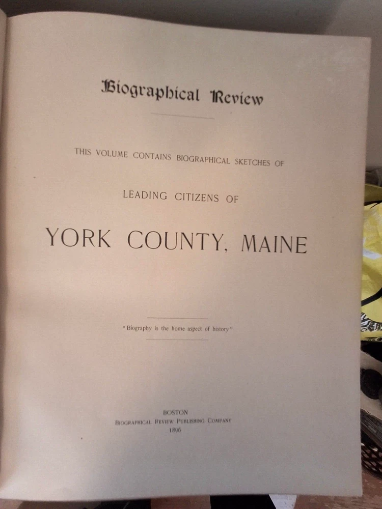 Delve into the past with the "Biographical Review Leading Citizens of York County Maine 1896," a genuine leather-bound treasure that offers a glimpse into the lives of the noteworthy residents of the era. Published by Biographical Review Publishing, this collectible is a first edition, adorned with illustrations that bring the biographies to life. With its focus on biography and autobiography, this book is a rich resource for genealogists, historians, and anyone with an interest in the personal stories of Maine's past. Gold gilt embossing on front & edge of pages. Measures 11" x 8.5" x 1 3/4". Many steel engraving illustrations.
