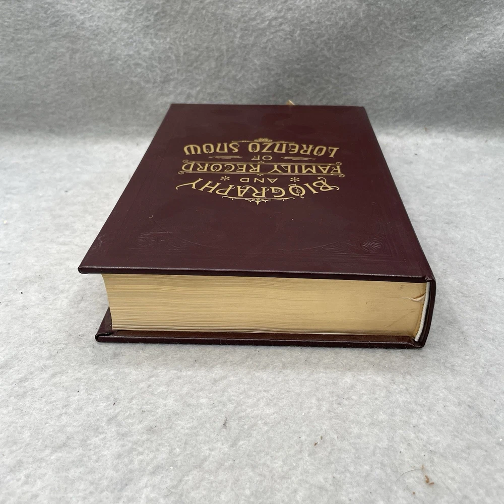 The "Biography and Family Record of Lorenzo Snow" is a special edition leather-bound book published by The Church of Jesus Christ of Latter-Day Saints in 1999. This nonfiction biography, written by Eliza R. Snow, provides insight into the life of early Mormon Church leader Lorenzo Snow. The book is intended for young adults and adults interested in religion and beliefs, with additional features such as gold gilt page edges, a satin ribbon marker, and a Christmas card from the First Presidency. This LDS gift edition is a valuable addition to any collection, making it a perfect gift for those interested in the history of the Mormon Church.