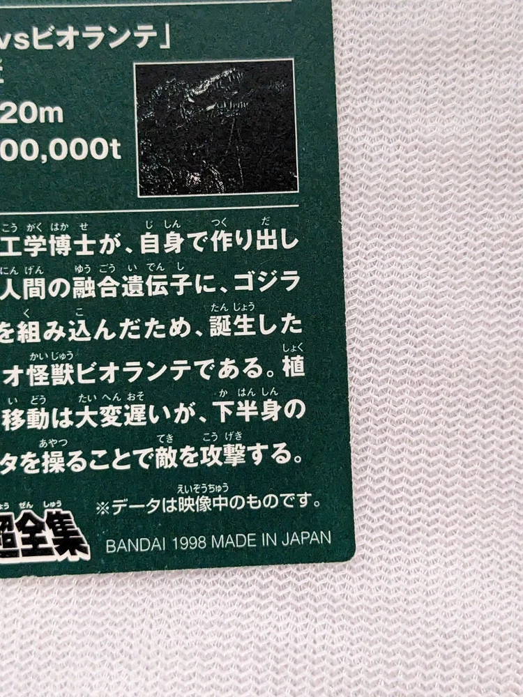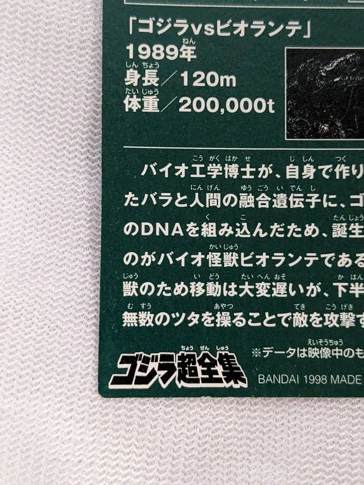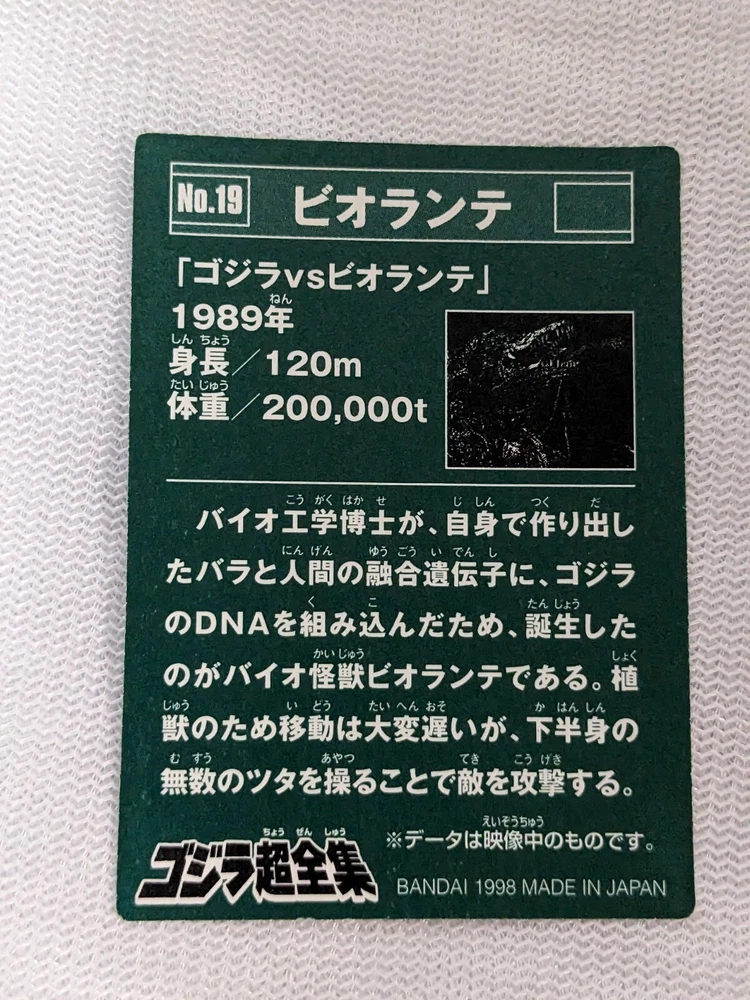 Bandai Mini Godzilla Biollante Card No.19 1998 Toho Toei Japanese Collectible 2.8x2.0