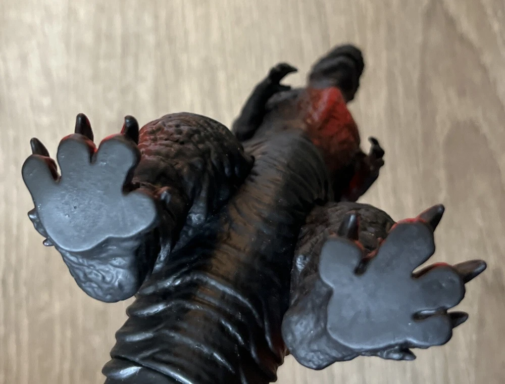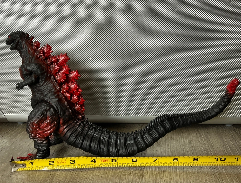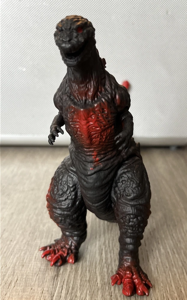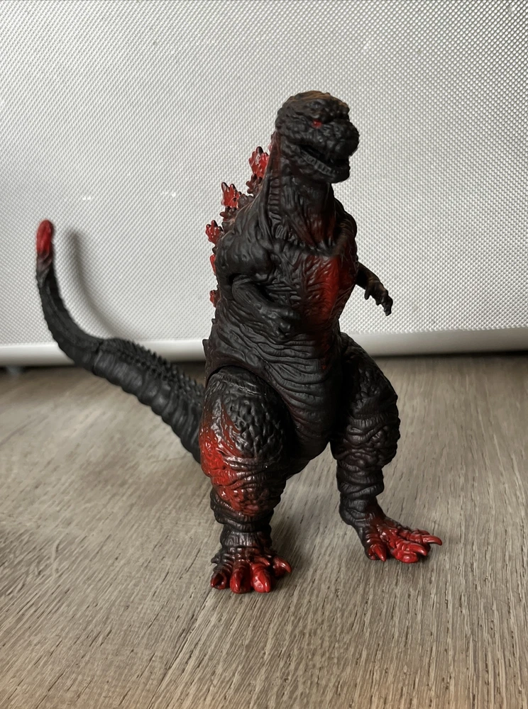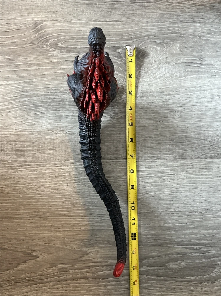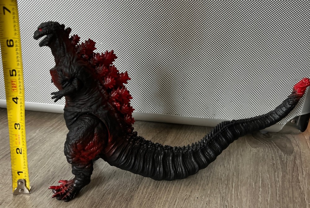 Please review all photos as they show the exact figure you will receive, including details like the feet. This is in like-new condition, having been displayed on my shelf since purchase, and has never been played with or handled by children. This Black Shin Godzilla figure is a must-have for any fan of the iconic kaiju franchise. Measuring 6.5 inches in height and approximately 12+ inches in length (depending on tail/leg positioning), this figure is made of soft vinyl and plastic materials. The black base with red painted accents gives it a striking appearance that will definitely stand out in any collection. The figure has articulated arms, legs, and tail, allowing for a range of display options. We're happy to answer questions + consider offers; we often accept lower offers the more items you buy at 1 time, so please let us know if you're interested in any of our other listings when you send an offer.