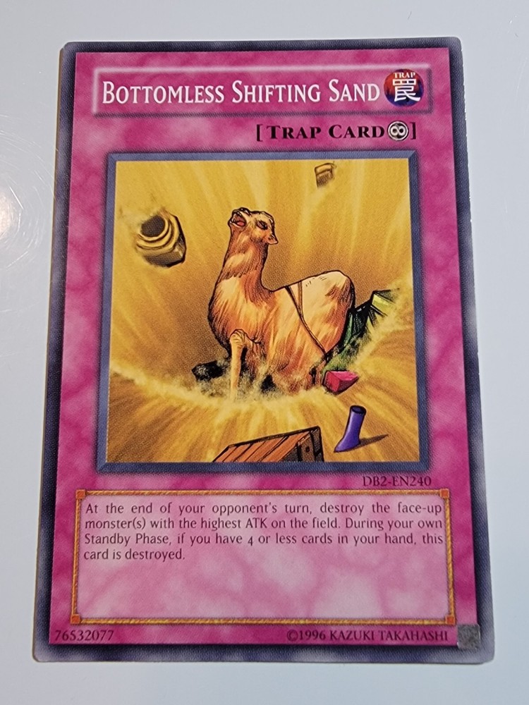 Bottomless Shifting Sand DB2-EN240 Common Unlimited Yugioh. Overall lightly played condition. (Please reference pictures for c osmetic condition). Take advantage of our multi item discount!!! When you buy 2 items you will have the opportunity to select a 3rd item of equal our lesser value for free from our whole inventory. (Must use Ebay's shopping cart feature in order to take advantage of this discount). If you have any inquiries please feel free to message us and we will respond as soon possible, usually within 24 hours. SHIPPING We almost always use USPS as our primary SHIPPING service. We ship within 24 hours of receipt of payment and will always provide tracking, unless otherwise stated in the listing. (We reserve the right to use a different carrier or service). FEEDBACK Your FEEDBACK is important to us as a growing small business. If for any reason you are unhappy with your transaction, please message us and we will do everything in our power to make it right. Returns Returns are accepted within 30 days of confirmation of delivery. If there is anything you are unhappy about with your purchase please message us and we will respond within 24 hours to your concerns. Thank you for supporting our small business. We appreciate your valued business with us and look forward to serving you in the future. Dan & Tonya Dio's Eclectic Treasures