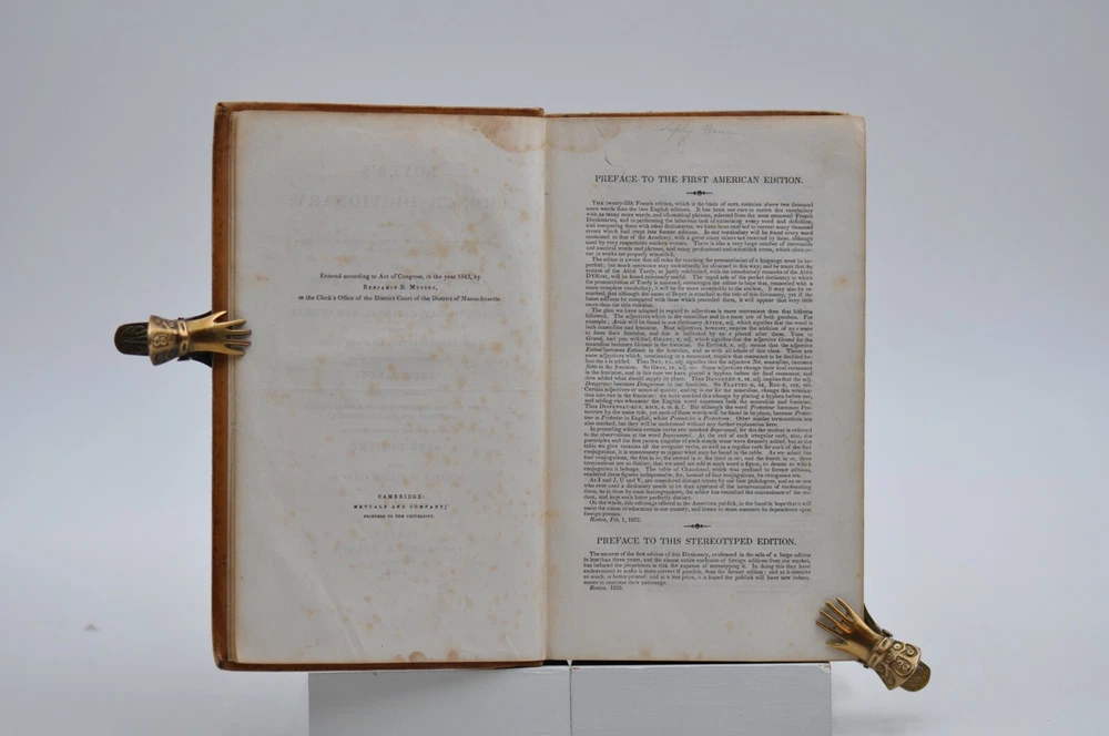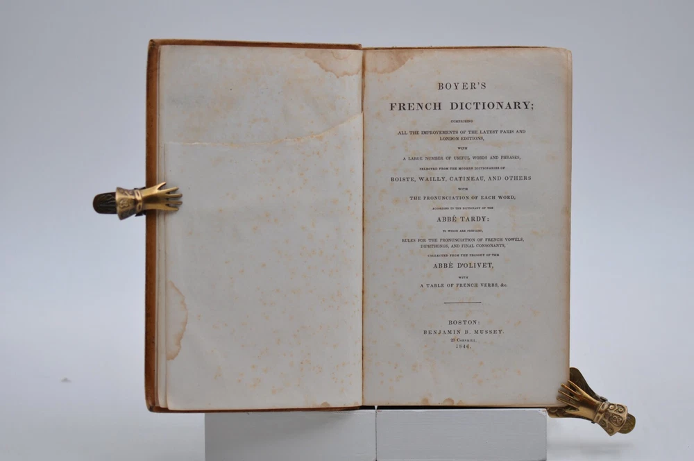 The “ Boyer’s French Dictionary ” Comprising all the Improvements of the latest Paris and London Editions, with a large number of Useful Words and Phrases, Selected from the Modern Dictionaries of Boists, Wailly, Catineau and Others, with the Pronunciation of each Word according to the ABBÉ Tardy. It also contains the Rules for the Pronunciation of French Vowels, Diphthongs, and Final consonants, Collected from the Prosody of the ABBÉ D’Olivet, with a table of French Verbs. This edition published by Benjamin B. Mussey of Boston in 1846 with the first American Edition published in 1822 and the Stereotyped Edition published in 1825.
