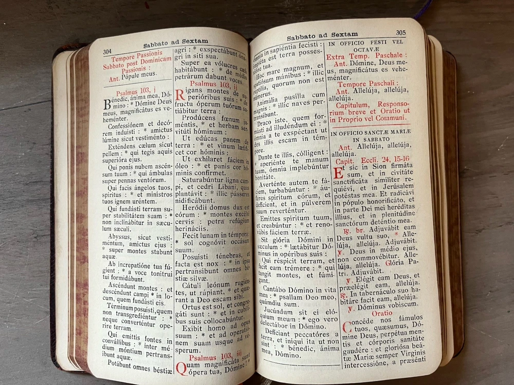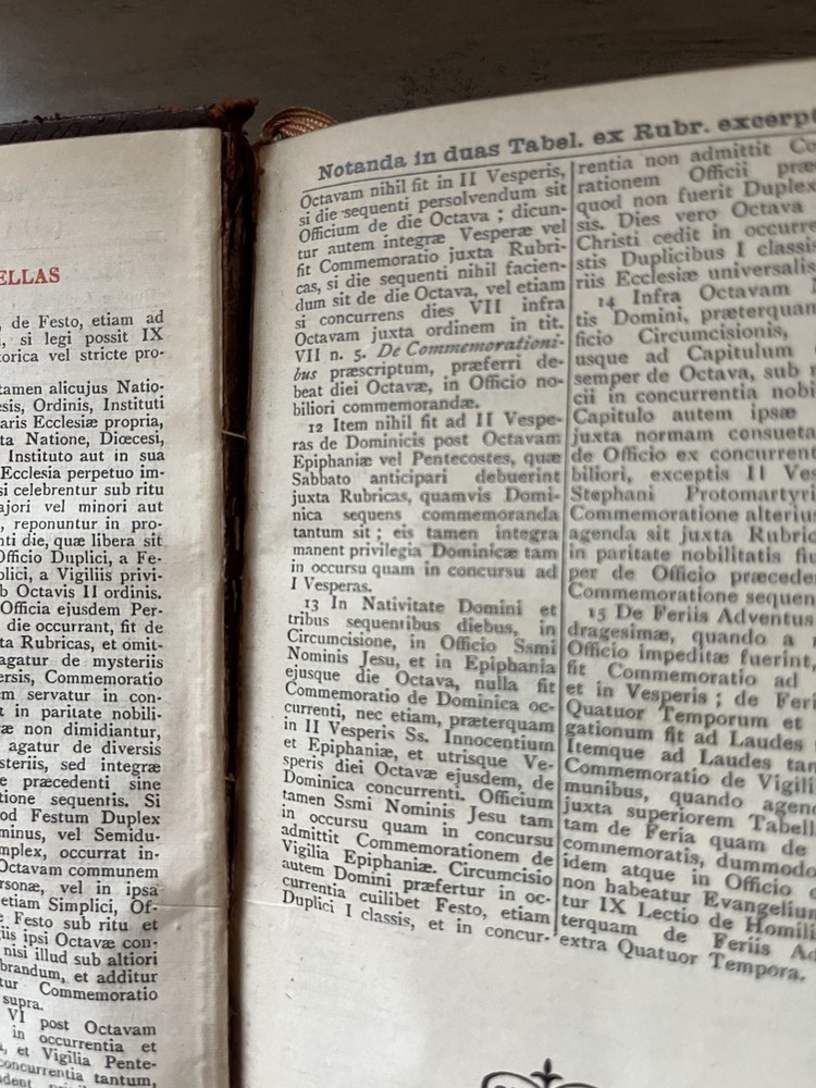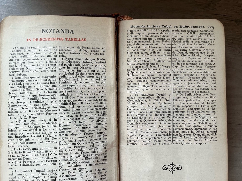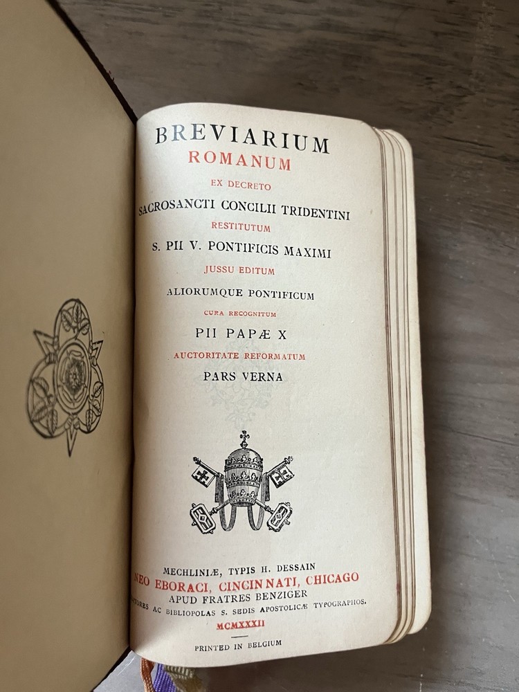 This Breviarium Romanum is in great shape for its age! The pages are solid and turn smoothly, with clear, easy-to-read text. The ribbons are still intact, and though the inside cover is a bit loose, it doesn’t affect usability. A beautiful vintage find—happy to provide more details if needed!