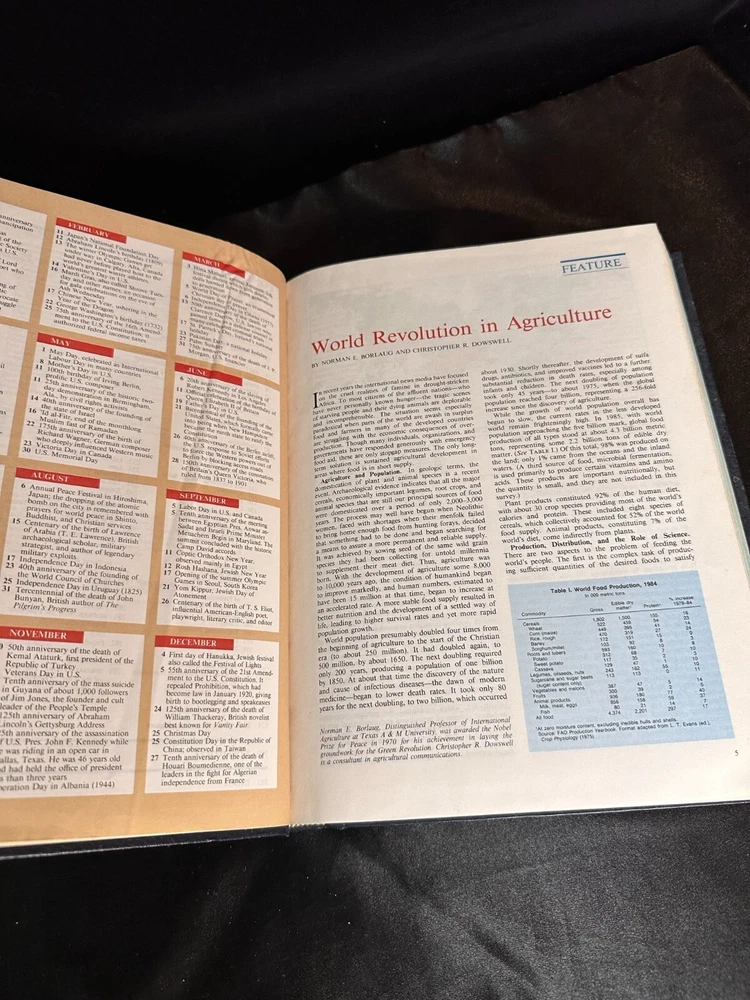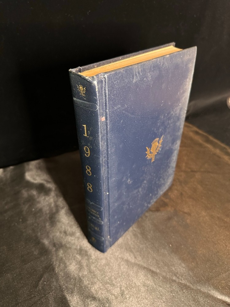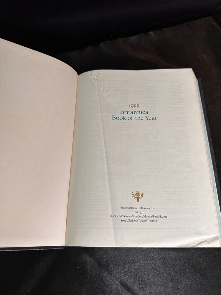 Britannica Book of The Year 1988 - Complete your collection Blue leather . wear and minor water? stained to cover, tanning inside, tanning on outer pages as shown( cleanable?) some creases on 1-2 noticeable pages. no missing pages or further known torn pages. Thank You for visiting our shop and supporting our small business. Shipping| All standard orders are shipped via USPS Media mail which takes about 2-7 days delivery time. Please note that unforeseen circumstances do occur and emergencies do happen. once an item is out of our hands and secured with a postal worker, any problems that should arise, should be communicated with the post office, as we will not be able to offer any assistance. All Book orders are shipped following day of purchase or the next working post office day. For faster shipping, please choose priority mail at checkout. Book Condition| All Books are SOLD AS IS and will be noted as to whether there are known or visible markings, tears, etc. All photos are of each item as they are. If you are unsure about condition or would like more Info or photos-send us a message, we're happy to help. Please note: Many books are used/vintage or antique. We cannot look through every page, thus may miss something. Please note: vintage books do have, in most cases, an old paper smell. Photographs may not always reveal exact color, imperfections or detail but effort is made to describe each item honestly. with over 9k+ books in our library we simply cant inspect every page of every book, Occasionally during inspection visible blemishes are missed. *Please note that we use recycled packing materials, not only to save the environment, but to save on shipping costs. what you may expect with used or vintage/antique books :You can expect wear to the spine and covers, yellow/brown pages due to age, dog eared/folded pages, writing, stickers and or adhesive residue. You can also expect amateur repairs made with materials not recommended for books like clear shipping tape, duct tape and school glue. Pictures of significant imperfections when applicable will be included in the listing and I am always happy to provide more pictures on request and answer any questions you might have.