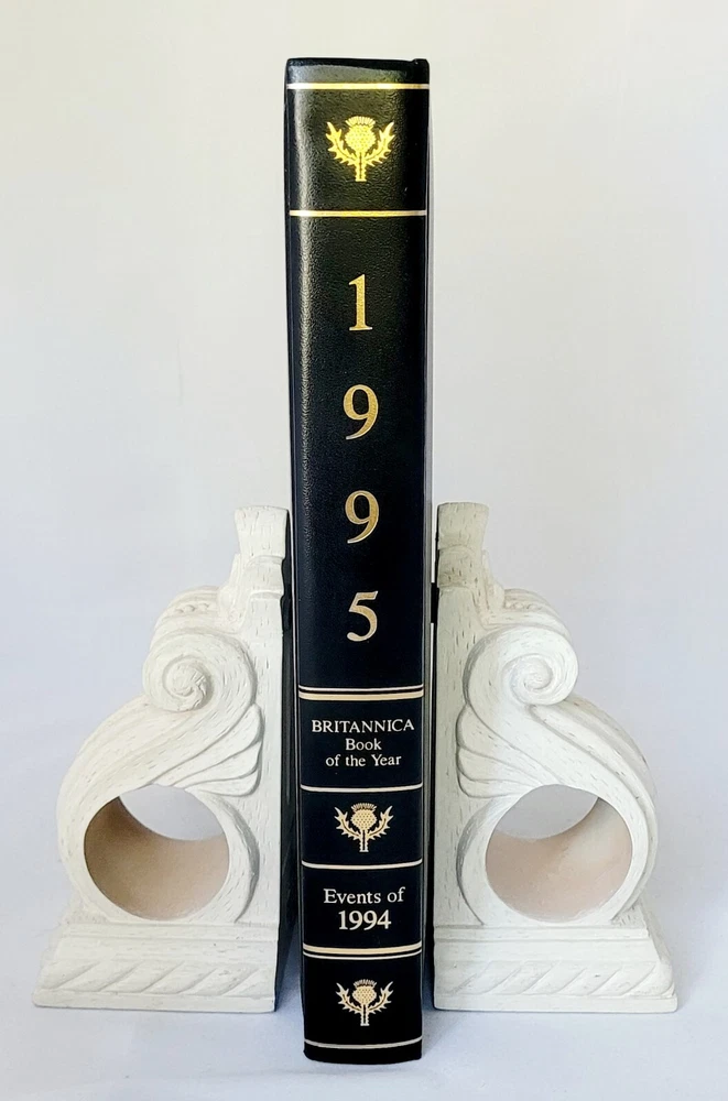 Britannica Book of The Year 1994 - Events Of 1993 Black Leather Gold Embossing. A4 Good condition Spine and binding in good condition No shelf wear on binding and cover (see pictures). No writing or highlighting on the inside page, unless where noted. Pages in crisp, pristine reading condition. Good copy for reading or collecting. In stock and ready to ship promptly. The book(s) pictured will be the book you will receive Disclaimer: I skimmed through this book and did not see any underlining, highlighting, or writing. I did not go page by page. Delivery We ship USPS standard media mail with free delivery confirmation to ensure timely, accurate delivery direct to you. Shipping in the U.S. only. Buyer to pay Shipping fee. Whenever possible, I will combine items to reduce total shipping cost. Please contact us before paying your order to combine shipping. Contact Us! If you have any questions, or want additional pictures of an item, please send us a message, we normally respond within the day. Check out our other Listings! We consider ALL offers!!!