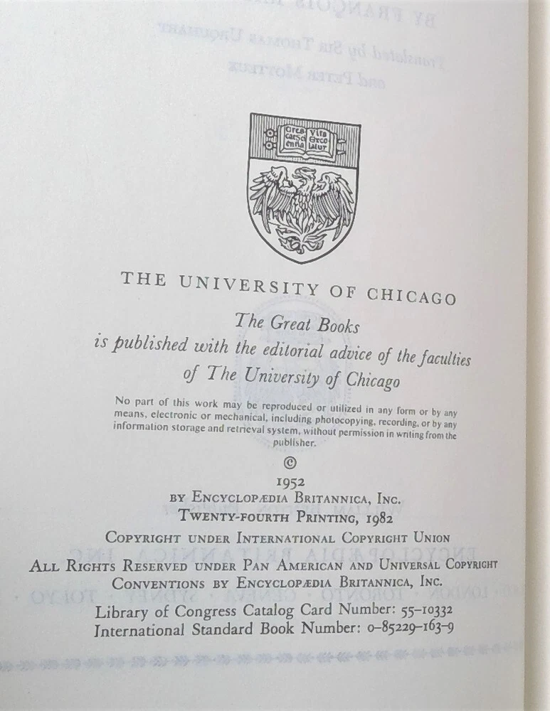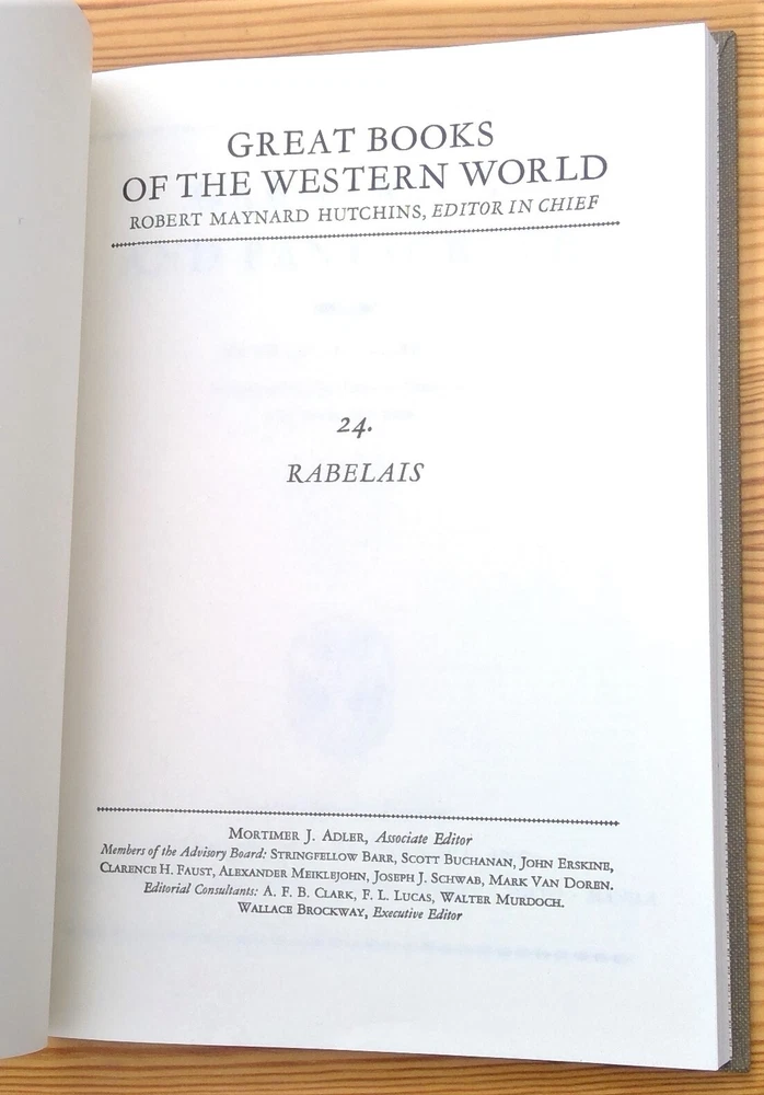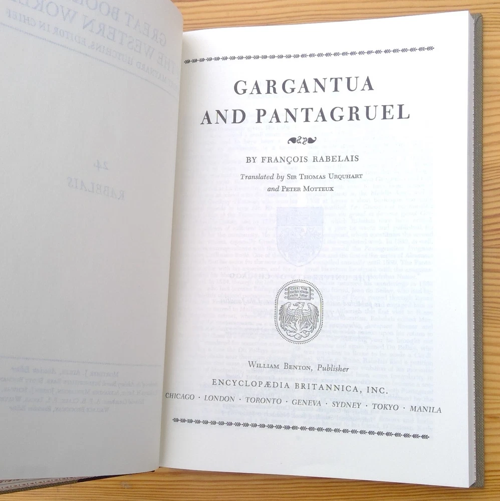 Britannica, 'Great Books of the Western World', 1982, number 24, Rabelais, hardcover. Very good pre-owned, vintage condition. Some dust on the exterior. The number of the book written in pencil on the first pages. We do combine shipping. Please email questions. Thank you for your interest. Have a great day!