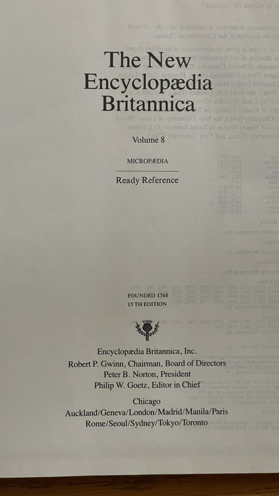Britannica Micropaedia Ready Reference Vol 8,9,10,11,12 Edition 15. Book is in excellent condition! No rips No flaws