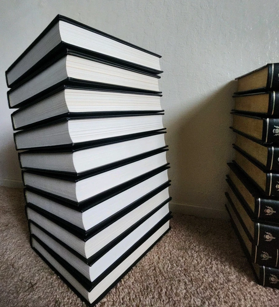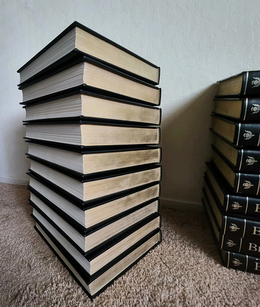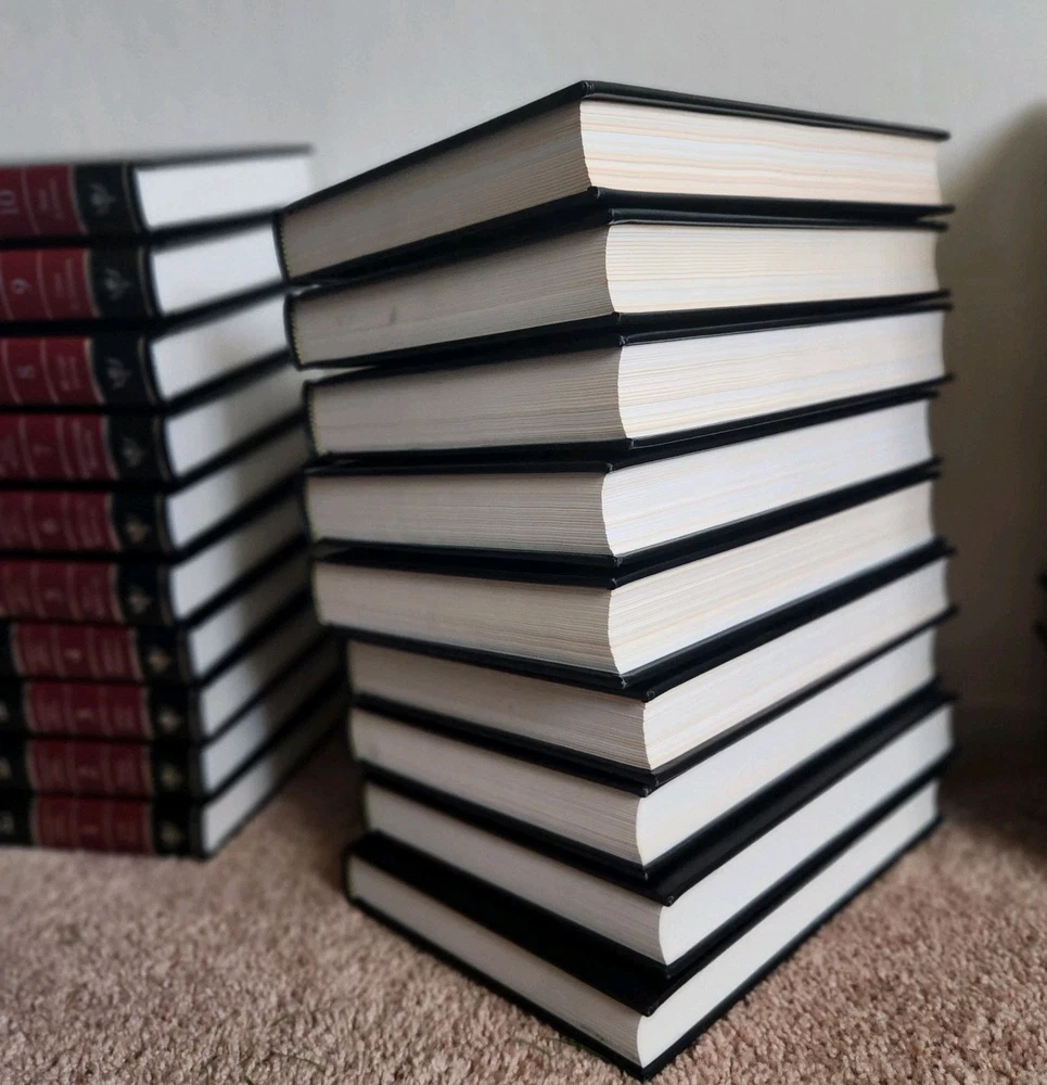 This is a complete set and is in like new to very good condition. There are no observable stains or tears to the books as far as I can tell, but I didn't look through all the pages. The front and back covers look new. The binding is still tight and secure. If you would like more photos, please feel free to ask.