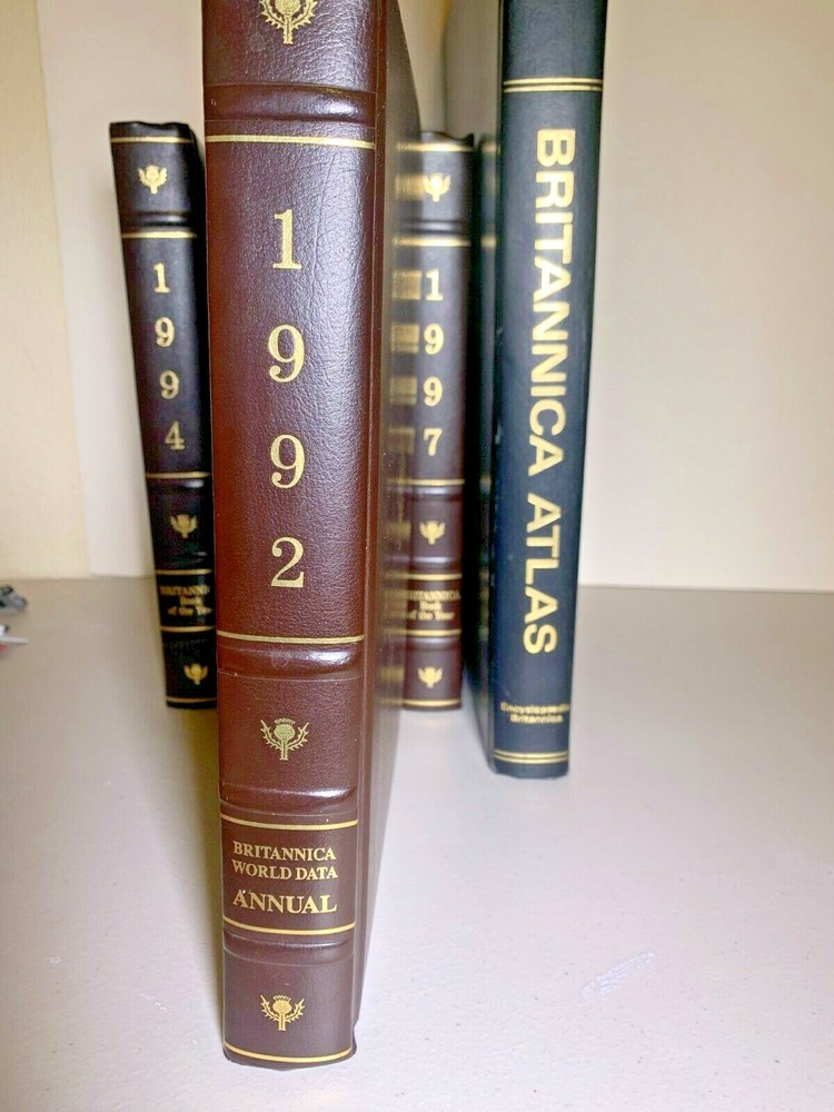 This 1992 Britannica World Data is bound in Padded Brown Leather. The book is in almost unused condition....