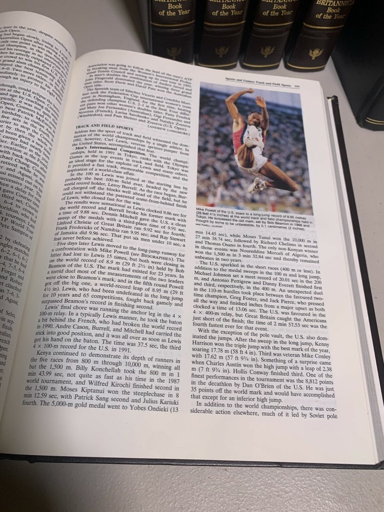 This 1992 Britannica World Data is bound in Padded Brown Leather. The book is in almost unused condition.