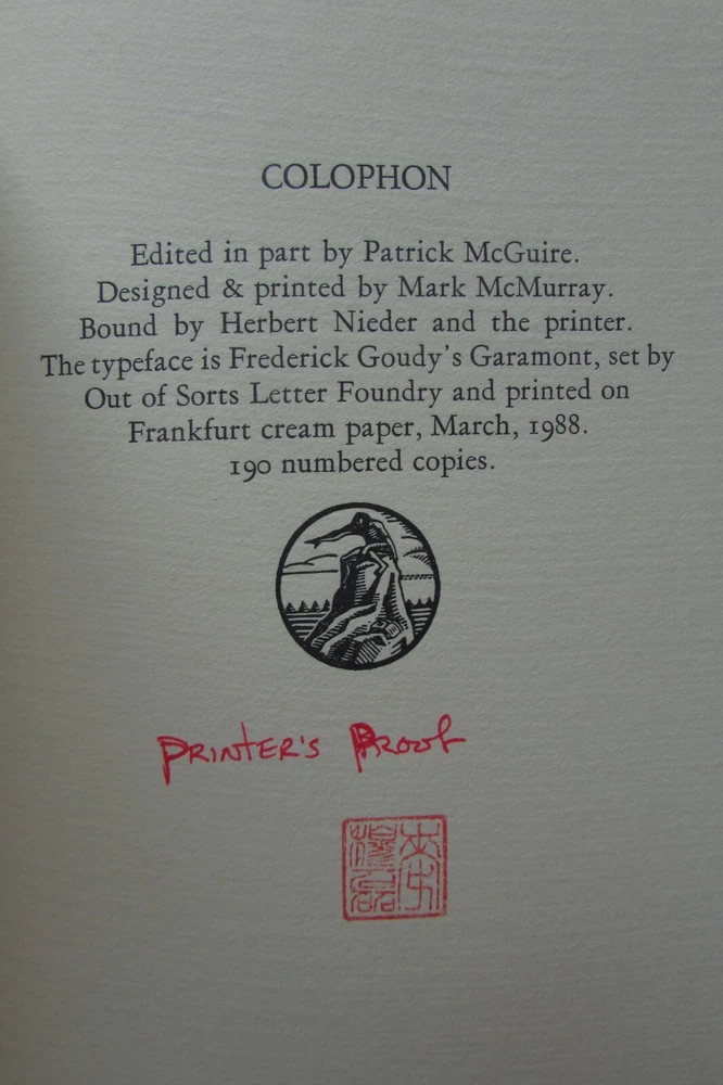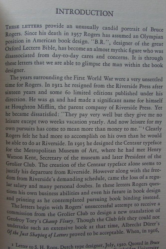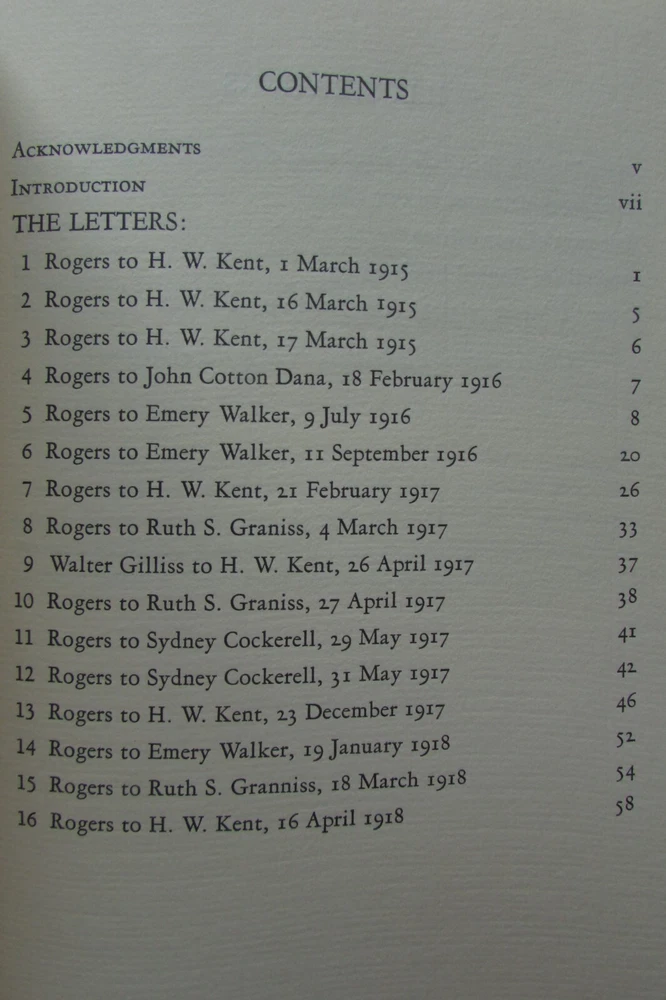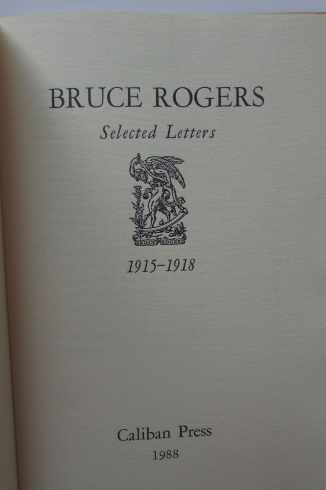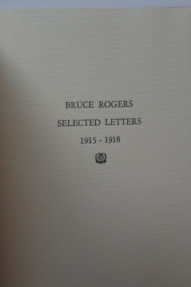 Bruce Rogers, Selected Letters, 1915-1918. This is a rare collection of private letters written by the famous typographer, type designer and visual artist: Bruce Rogers. He is regarded by many to be one of the best book designers of the 20th century. This is the printer's proof (see next to last photo) of this collection of letters, of which only 190 numbered copies were printed. The collection of letters is of interest in how it reveals how difficult it is to produce a private press book. Printed on special cream paper, soft cover.