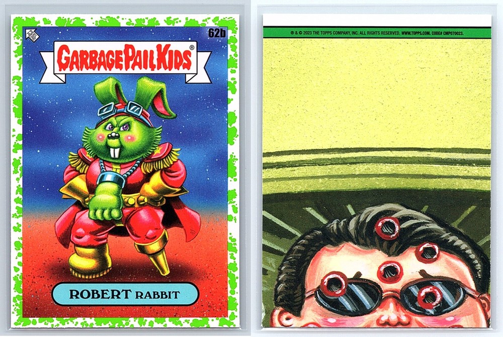2023 Topps Garbage Pail Kids Series 2 - Intergoolactic Mayhem 2 Card Set - Includes BOTH cards pictured: Lucky Bucky 62a & Robert Rabbit 62b! Perfect for Christmas & Birthday Gifts, Gags and Fun! Check out our Seller Page for more GPK Cards! Images are representative of cards received. These cards are Pack FRESH and in Near Mint (centering and condition) or Better! Shipping Information ***Will ship FAST (I drop off orders at USPS daily before last pickup except Weekends) Item will ship properly in a TOP LOADER/Sleeve with TRACKING! I have years of experience shipping thousands of cards successfully all over the world. ***In order for us to provide affordable GPK Global option, International Shipping will ship via USPS International Basic Mail and may not have tracking depending on value of order.*** Combined Shipping discounts for International!! Affordable rates / Safest Delivery! See reviews **I am not responsible for any custom fees/Import taxes etc. Please contact your local country contacts for any additional Import fees. ***Please FOLLOW our GPK Seller EBAY STORE for exclusive Deals and Promotions.***