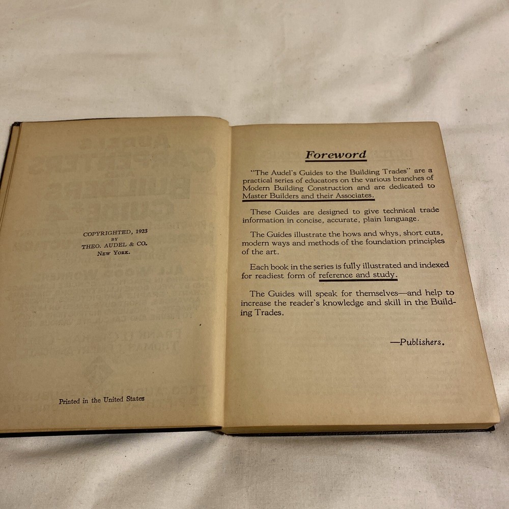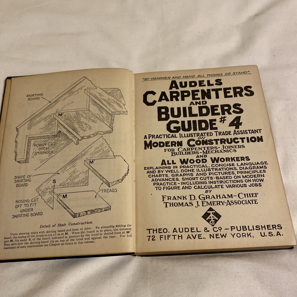 This is book #4 and the last issue in the series of Audels Carpentry and Builders guide. Minor top fraying on spine but book itself in great vintage condition. Measures 5x7. View photos carefully! Book sold as is!