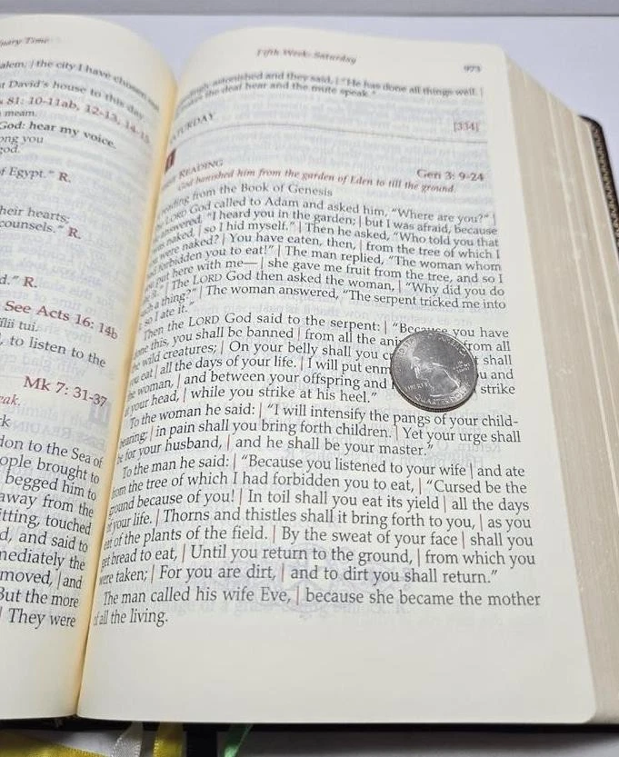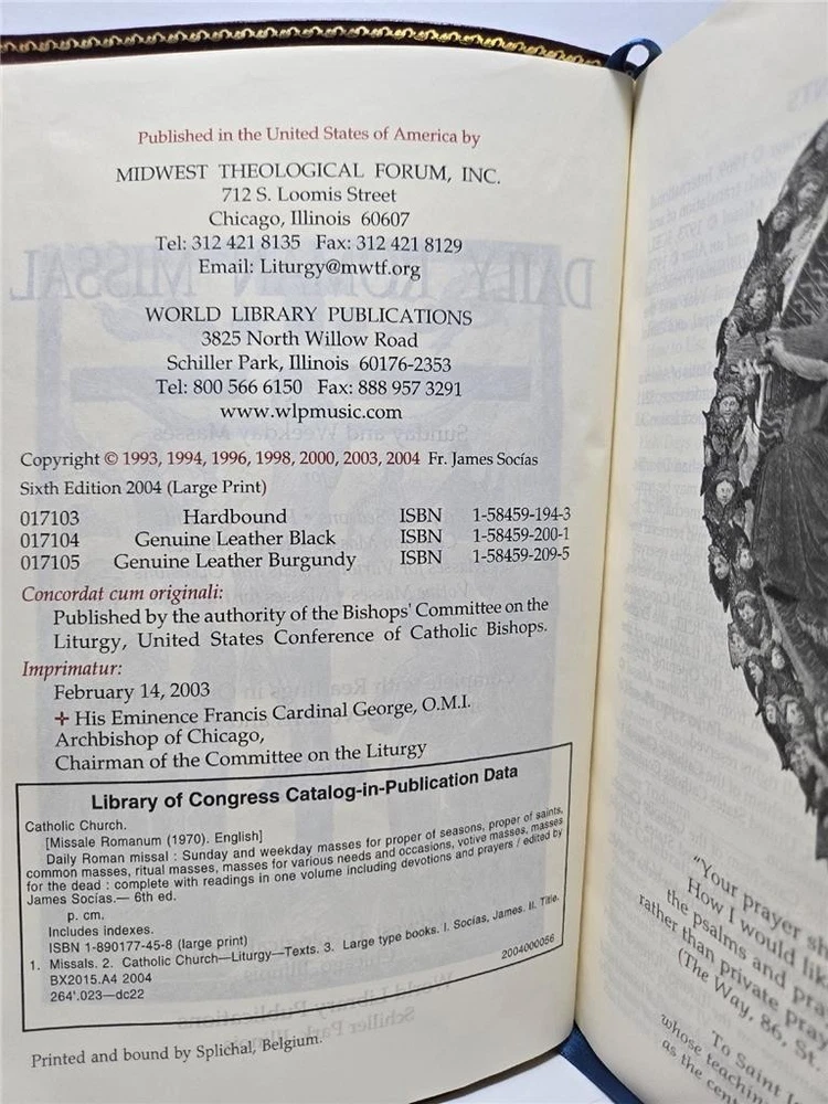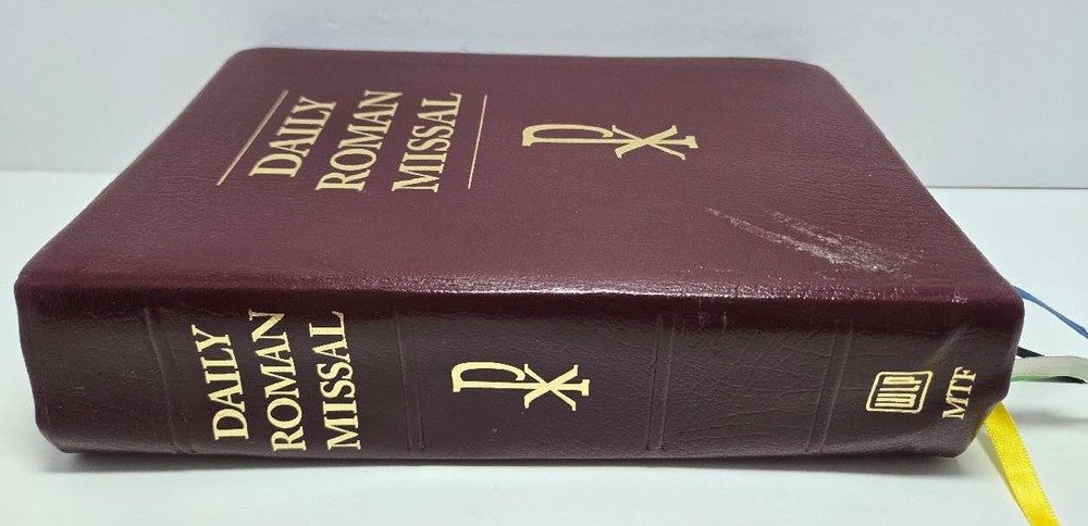 good/ used condition...front cover has a scar on it (see picture)...light other scuffs/ dings to covers...gilt/ gold edges have scuffs/ marks (see pictures)...clean text...PLEASE CLICK DESCRIPTION IF YOU ARE ON YOUR PHONE TO SEE MORE PHOTOS AND READ FULL DESCRIPTION...thanks!! Burgandy Leather Large Print DAILY ROMAN MISSAL 2004 6th edition SCAR ON COVER Burgandy Leather Large Print DAILY ROMAN MISSAL 2004 6th edition SCAR ON COVER Click images to enlarge Description INSTANT GRATIFICATION!! BUY-IT-NOW!! FREE MEDIA MAIL SHIPPING! This is a DAILY ROMAN MISSAL up for grabs! 2004 6th edition, leather burgandy, LARGE PRINT...good/ used condition...front cover has a scar on it (see picture)...light other scuffs/ dings to covers...gilt/ gold edges have scuffs/ marks (see pictures)...clean text...Add it to your Spiritual studies today! Get it while I got it!! ***I have included one picture with a quarter to illustrate text size :) **Please click on my SUPERSIZE pictures for more content information :) ITEM SHOWN IS MY PICTURE, NOT AN EBAY STOCK PHOTO Don't miss out on this one! PLEASE FEEL FREE TO EMAIL ME WITH ANY QUESTIONS. FREE Media Mail S&H. Please keep in mind that Media Mail shipping generally takes from 5-10 business days for delivery in the lower 48 states and longer to Hawaii, Alaska, and APOs. Most payment forms accepted through Ebay checkout. THANKS!! Get images that make Supersized seem small. Showcase your items with Auctiva's Listing Templates! THE simple solution for eBay sellers. Track Page Views With Auctiva's Counter