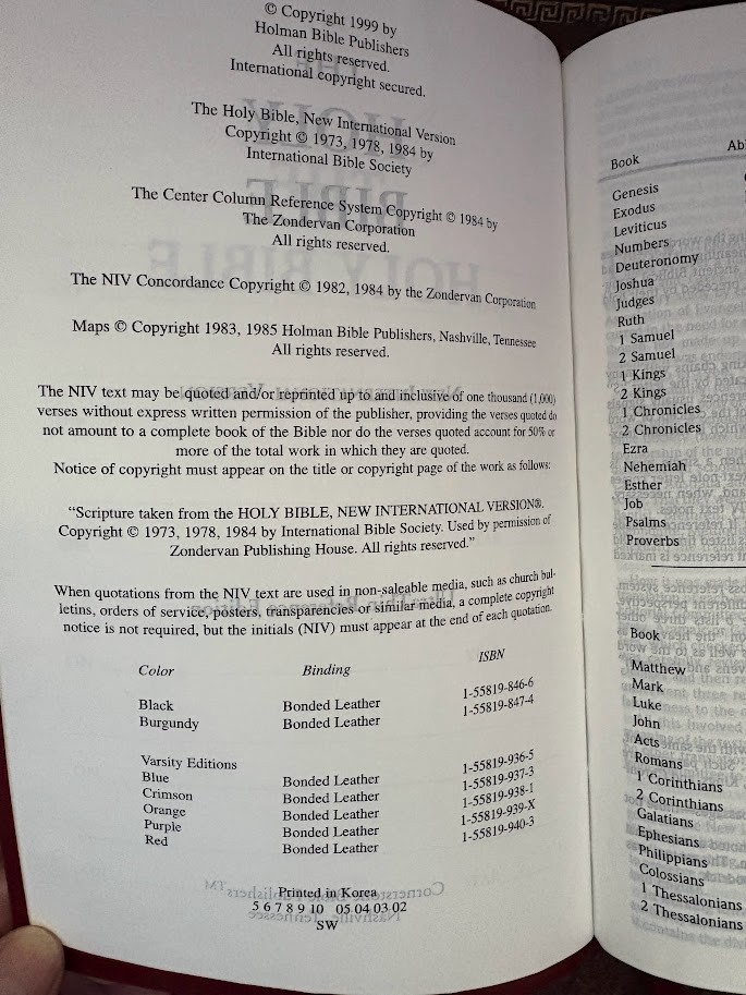 | Synopsis | Premium bonded leather Gold foil page edging Center-column references Red letter Concordance Presentation page Family record section Color maps Ribbon marker Gold-embossed spine detailing Gift boxed 5 1/2 x 8 1/2 % Font size: 9 |