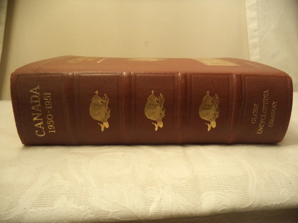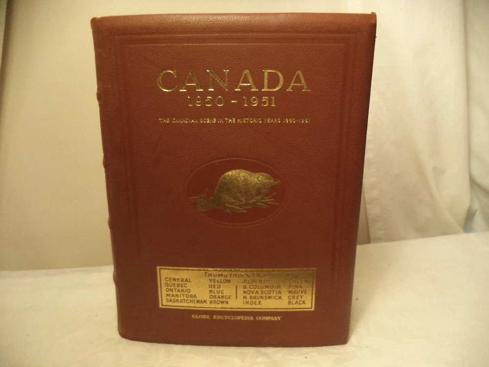 CANADA 1950 1951 GLOBE ENCYCLOPEDIA LEATHER BINDING 836 PAGES. Very interesting History of Canada, tons of photos..Please see actual photos for condition. We live very close to the Quebec Border, I am sure shipping will be high if from Canada. Please email me if interested and I might be able to ship cheaper from Quebec into Canada. Please feel free to email me with any questions, and thanks for looking. WE WILL ALWAYS COMBINE SHIPPING. JUST PLEASE WAIT FOR A REVISED INVOICE. We are always striving for 100% customer satisfaction, If you do not feel like you have received a 5 star transaction, please let us know. Please check out all the items in our store.......as we add new items each week.