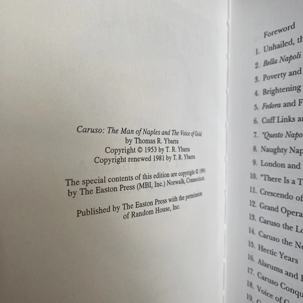 CARUSO MAN OF NAPLES VOICE OF GOLD Thomas Ybarra - Easton Press GREAT LIVES. EXC - please see pics
