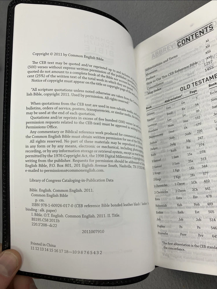 COMMON ENGLISH BIBLE Reference Bible 2011 Bonded Leather - Maps & Concordance VERY GOOD CONDITION -- CLEAN COPY/NO MARKINGS ON THE INSIDE (see pics) *Item will be protected well for shipping and comes with a tracking number for confirmation.* I ship out items every day so expect a quick delivery!
