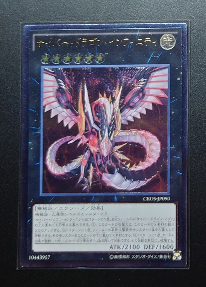 All packaging is done with top loaders Item Description: CROS-JP090 - Cyber Dragon Infinity - Ultimate Rare/ Japanese / YuGiOh! We sell official products only Japanese version Card condition Lightly played (Excellent)~ Near Mint All packaging is top loader PSA items or orders totaling $50 or more come with a tracking number Also, if your order totals $30.00 or more or is combined with a PSA item, shipping will be free. Our store is a great place to buy in bulk. For orders under $50, please select the $5 shipping method! In that case, we will provide you with a tracking number! We recommend that you order with a tracking number! [Payment] And please make a payment within 3 days otherwise automatically unpaid case will be opened. But if you would like to cancel after you buy, you can contact us to cancel. [Shipping] +Handing time abuout 3 business days. International mail takes about 2 weeks to 1 month to arrive. (There is a possibility that you may be stopped by customs for no reason, but you will receive your goods without any problem. If you are in a rush, please choose Expedited Shipping- from outside the US. However, orders over $200.00 without tax will be shipped by EMS or DHL unconditionally! All packages are top loaders or card savers. International Buyers Note: Import duties, taxes and charges are not included in the item price or shipping charges. Please understand these charges are the buyers responsibility. Please check with your countrys customs office to determine what these additional costs will be prior to bidding/buying. These charges are normally collected by the delivering freight (shipping) company when you pick the item up please do not confuse them for additional shipping charges. We do not mark the value of goods below the selling price on invoices, or mark goods as gift. These are illegal according to Customs regulations.
