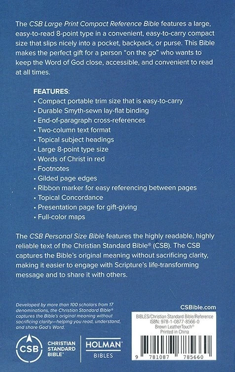 | Book Title | Csb Large Print Compact Reference Bibles, Brown Leathertouch |