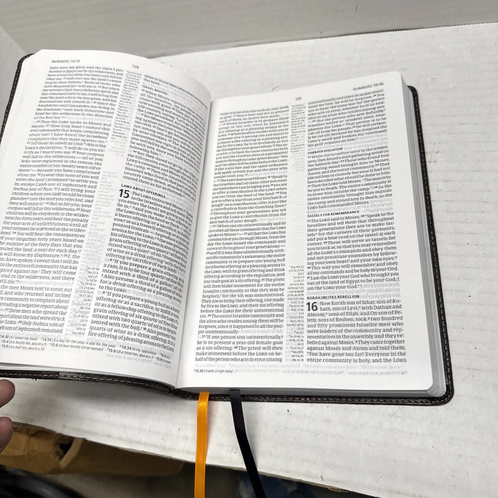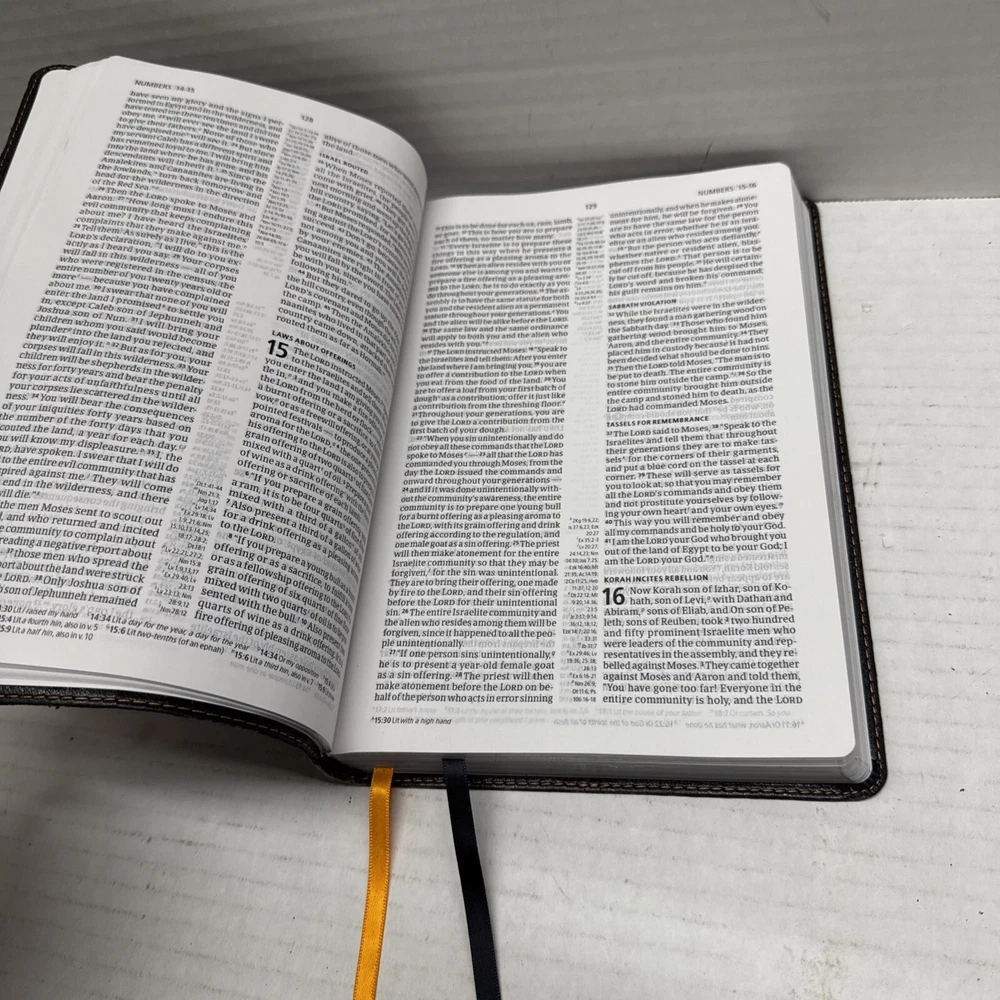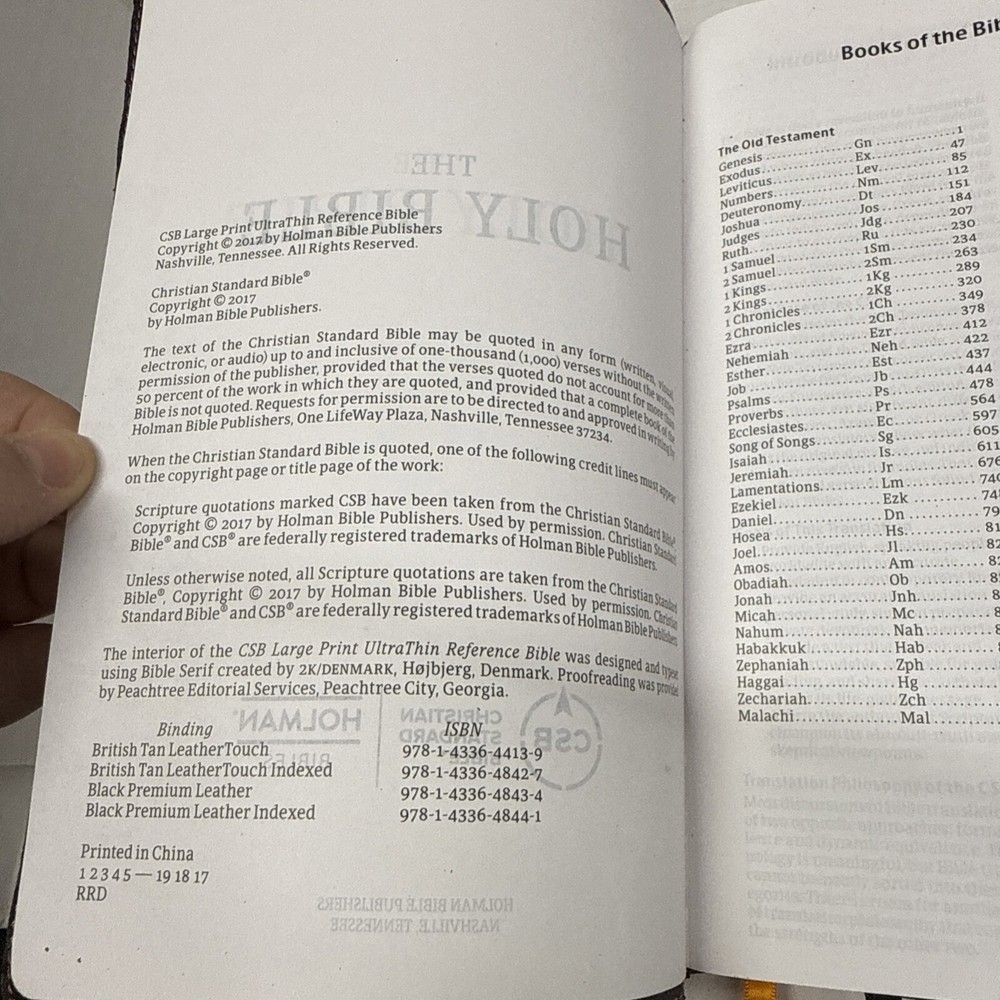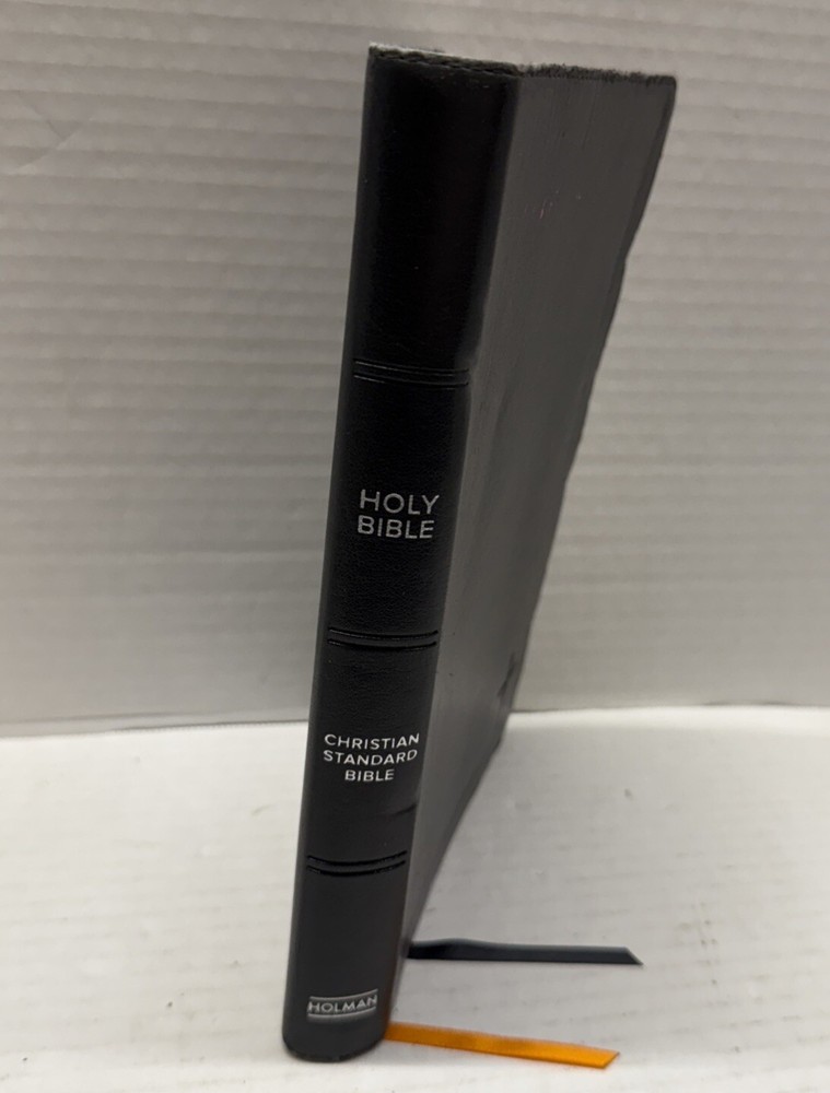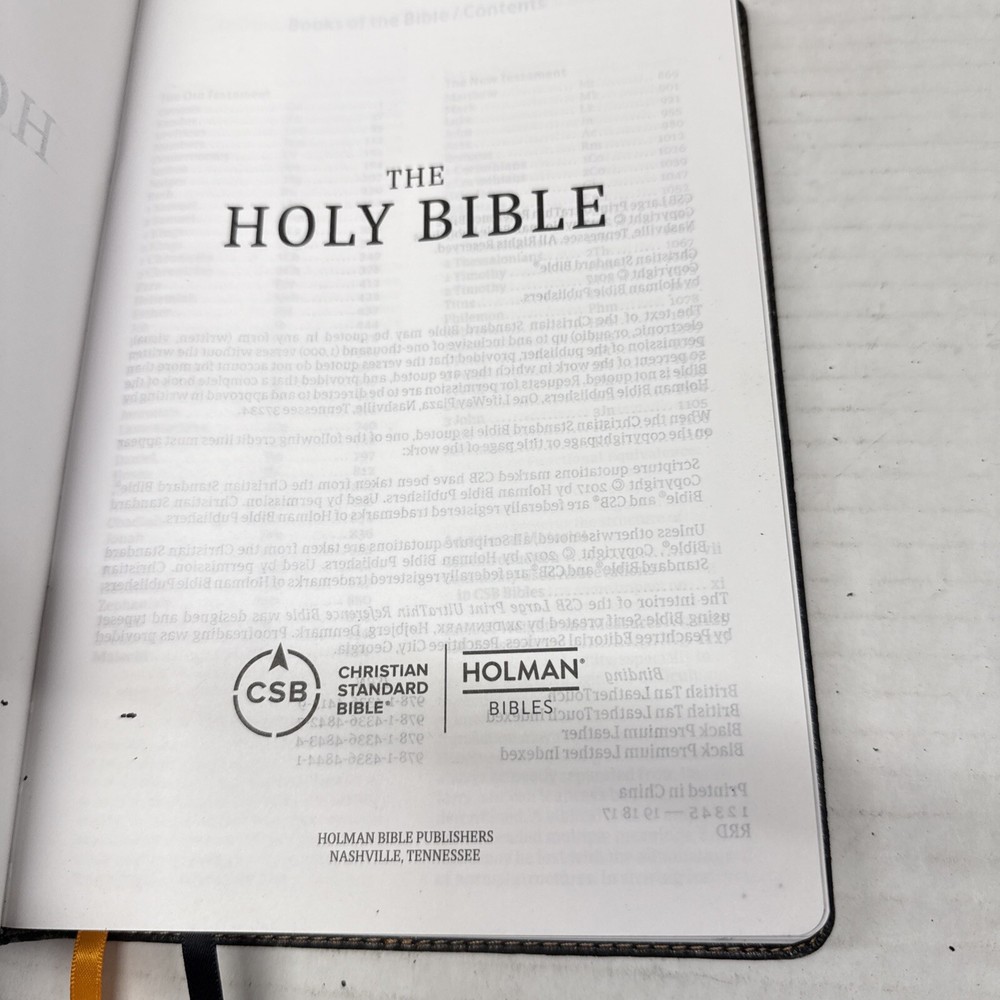 The CSB Large Print Ultrathin Reference Bible, Black Premium Leather by Holman 2017 is a Christian Standard Bible that is perfect for anyone seeking a comprehensive and easy-to-understand Bible study. This Bible features a black premium leather binding and is the perfect choice for those looking for a luxurious and collector's edition. It has 1328 pages and measures 9.1 inches in length, 6.1 inches in width, and 0.9 inches in height. The CSB Large Print Ultrathin Reference Bible, Black Premium Leather by Holman 2017 is intended for young adults, ages 9-12, and adults. It is written in English and published by B&H. This Bible is signed, inscribed, or marked as ex libris and has no personalization or vintage features. It is a nonfiction book that is perfect for anyone seeking a deeper understanding of Christianity. And very good condition leather bound, soft cover book has no writing on pages. Has normal bookshelf wear to cover.