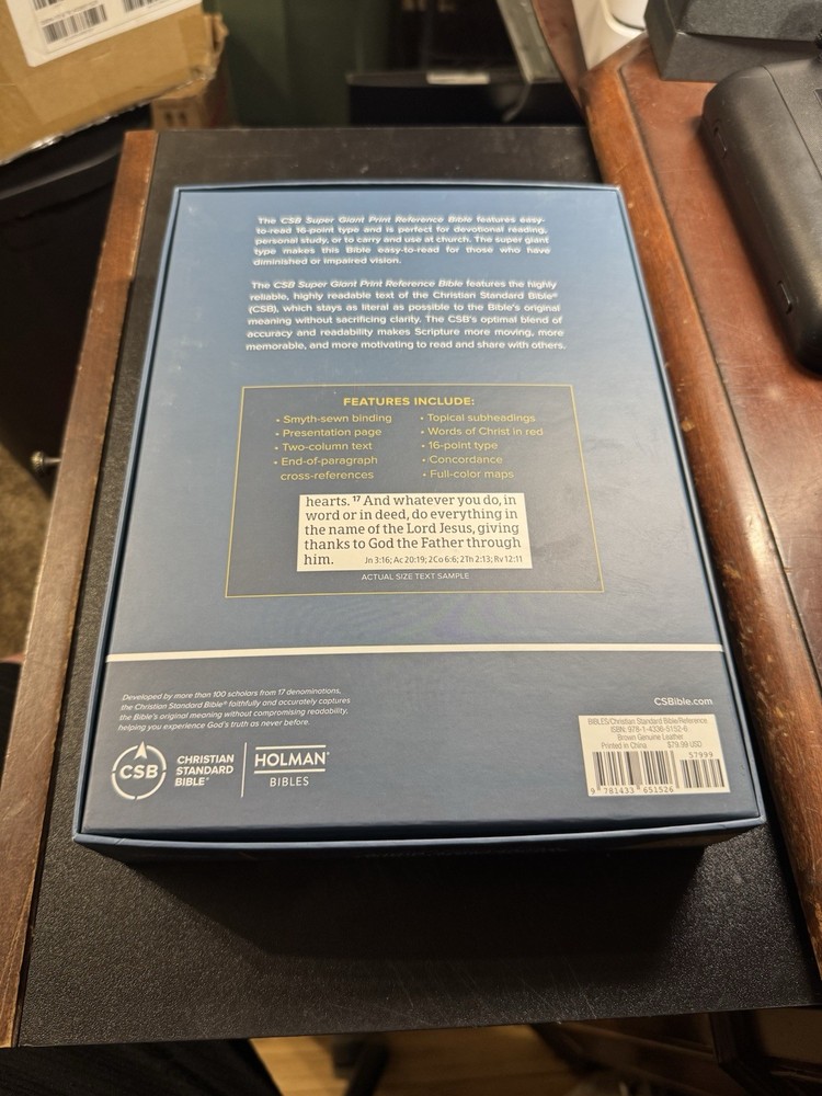 This CSB Super Giant Print Bible is absolutely stunning—the luxurious goatskin leather feels soft yet durable, and the gold leaf detailing adds a touch of elegance. The giant print makes reading effortless, while the red lettering beautifully highlights Christ’s words. Perfect for serious study or devotional reading, it’s both gorgeous and practical. A true heirloom-quality Bible that’s worth every penny!
