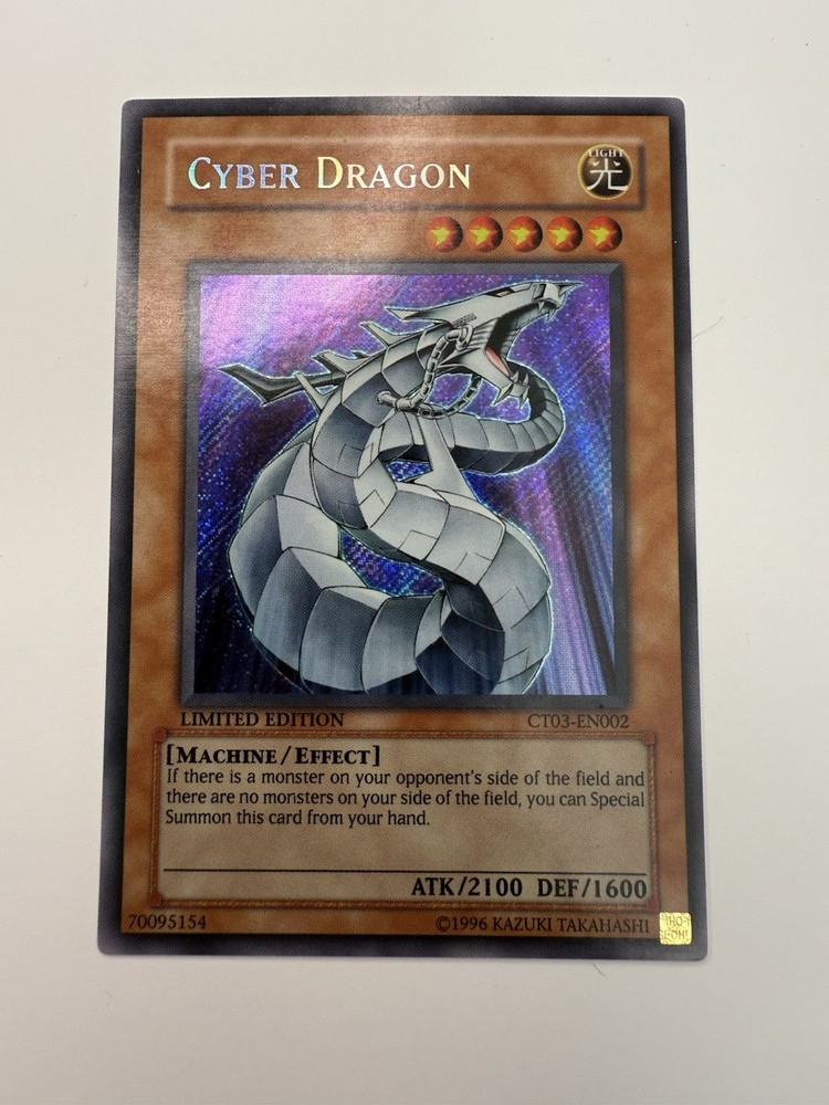 CT03-EN002 Cyber Dragon Secret Rare Limited Edition Yugioh Card. Condition is Ungraded. Dispatched with Royal Mail 2nd Class Letter.