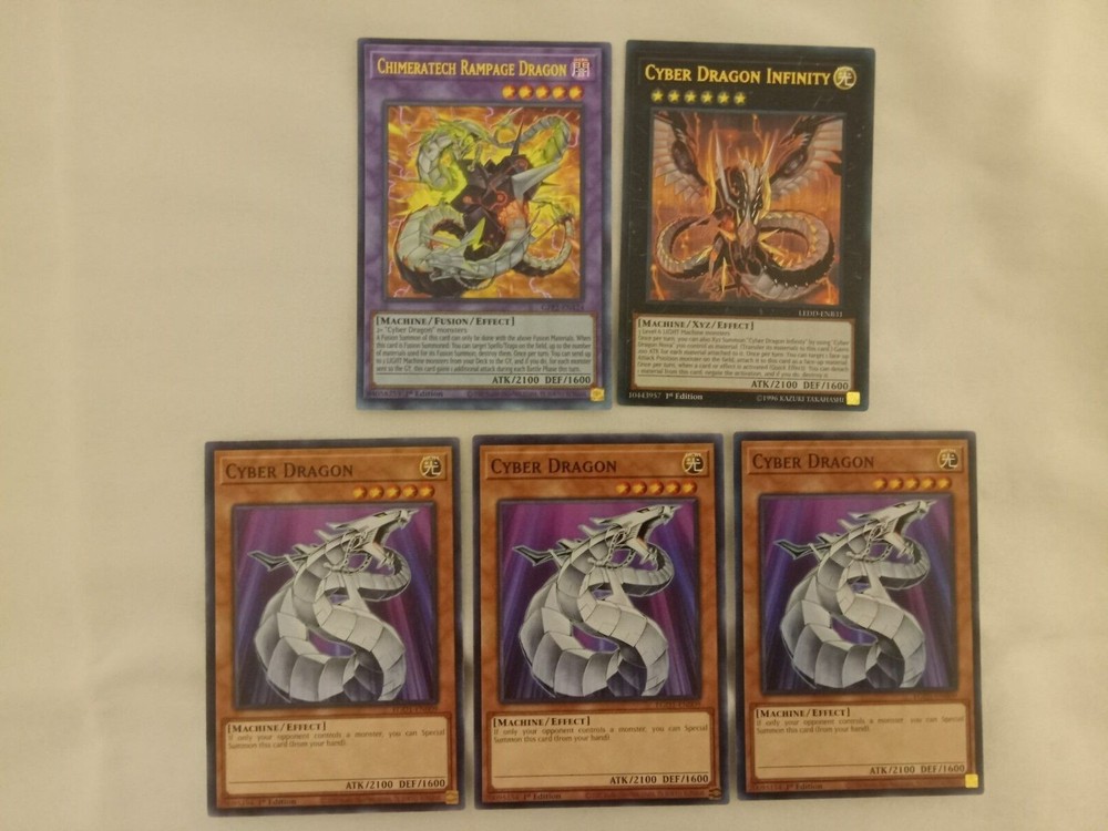 CYBER DRAGON INFINITY ULTRA RARE + CHIMERATECH RAMPAGE DRAGON + CYBER DRAGON x3! AS SHOWN IN PICTURES: CYBER DRAGON INFINITY ULTRA RARE CHIMERATECH RAMPAGE DRAGON ULTRA RARE CYBER DRAGON x3 COMMON ALL orders from my store will be shipped in a small envelope WITH tracking shipped with an eBay standard envelope tracking label. See shipping price! Handling time is 2 days, and then the item will be shipped immediately!