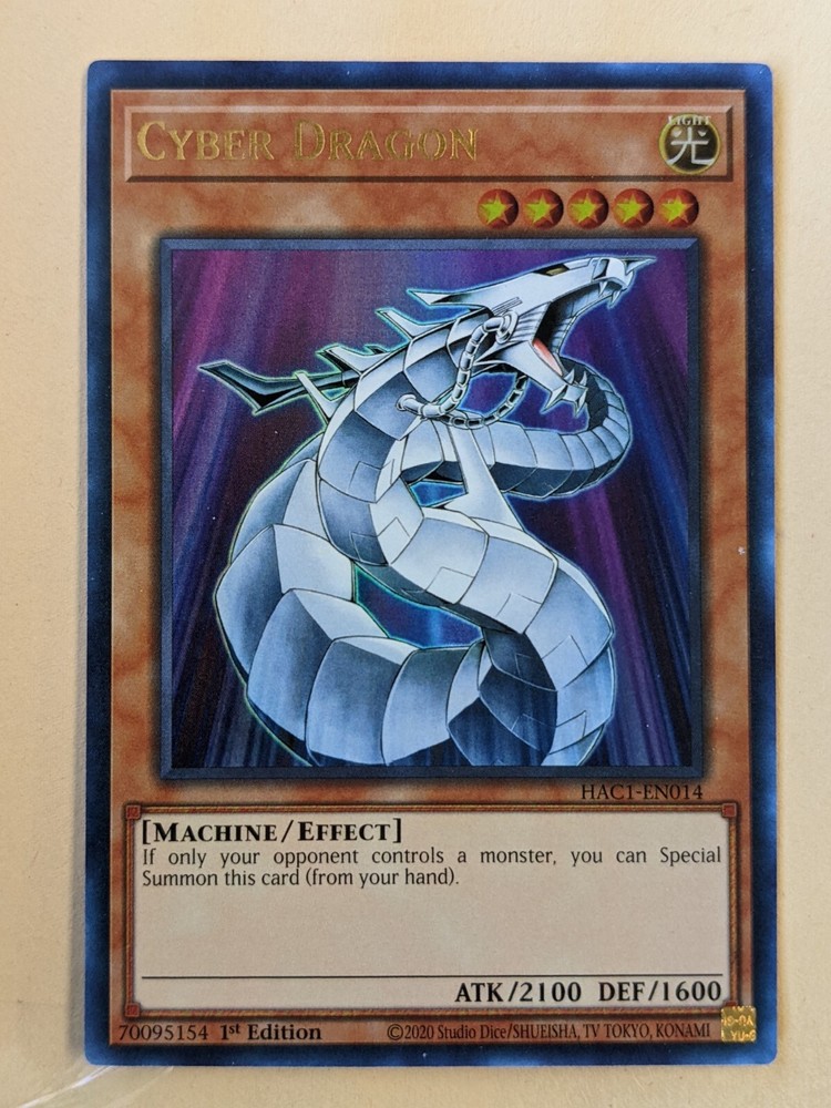 You are bidding on a YUGIOH-CYBER DRAGON-1ST EDITION ULTRA RARE HAC1-EN014 DUEL TERMINAL This card is not graded but in very good condition. You get the card shown in the pictures. I will ship your card in a top loader, bubble wrap then cardboard mailer. I will combine shipping. My shipping price is $2.99 for up to 9 regular thickness cards and $3.99 and up for anything over 10 cards. Payment must be made within 3 days of purchase. I will ship no later than 2 business days after receiving payment. I don't ship on Saturday or Sundays. To ALL my customers, please be patient as the mail has slowed down due to the VIRUS. THANK YOU for your patience and understanding. Be safe!! There is a delay at customs, my US customers, please note it could take up to 60 days to receive your cards. If you have any questions, please don't hesitate to contact me. Please check out my other items at Jethro's cards and collectibles. Have a great day, cheers! J'expédierai votre carte dans un top loader, du papier bulle puis un mailer en carton. Je vais combiner l'expédition. Mon prix d'expédition est de 2,99 $ pour un maximum de 9 cartes d'épaisseur régulière et de 3,99 $ et plus pour tout ce qui dépasse 10 cartes. Le paiement doit être effectué dans les 3 jours suivant l'achat. J'expédierai 2 jours ouvrables après réception du paiement. Je ne livre pas le samedi ou le dimanche. À TOUS mes clients, veuillez être patient car le courrier a ralenti en raison du VIRUS. Merci pour votre patience et votre compréhension. Fais attention!! Si vous avez des questions, n'hésitez pas à me contacter. Veuillez consulter mes autres articles sur les cartes et objets de collection de Jethro. Bonne journée, bravo!