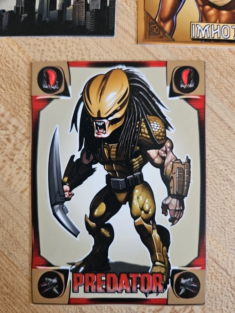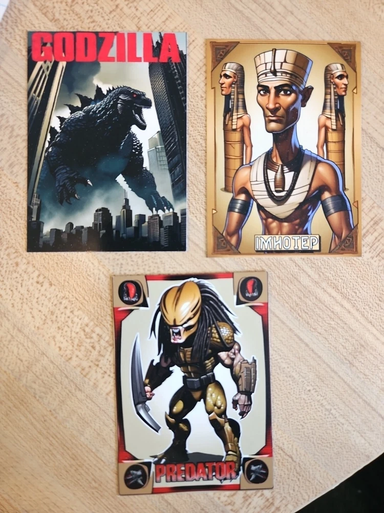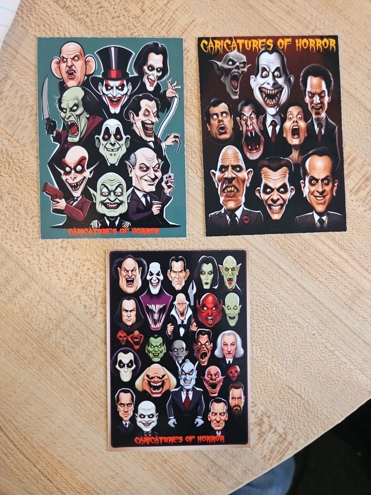This set of three Caricatures of Horror custom cards features some of the most iconic horror movie characters of all time. The cards are made from high-quality card stock and are standard sized, making them perfect for any collection. Each card showcases a different character, including the Predator, Godzilla, and Imhotep. These non-sport trading cards are in English and were manufactured in the United States. They are not autographed and are not vintage. The genre of these cards is horror, and they are part of the Caricatures of Horror franchise. These trading card singles are perfect for collectors who are fans of horror movies and want to add some unique cards to their collection. Get your hands on this set of three cards and add them to your collection today!
