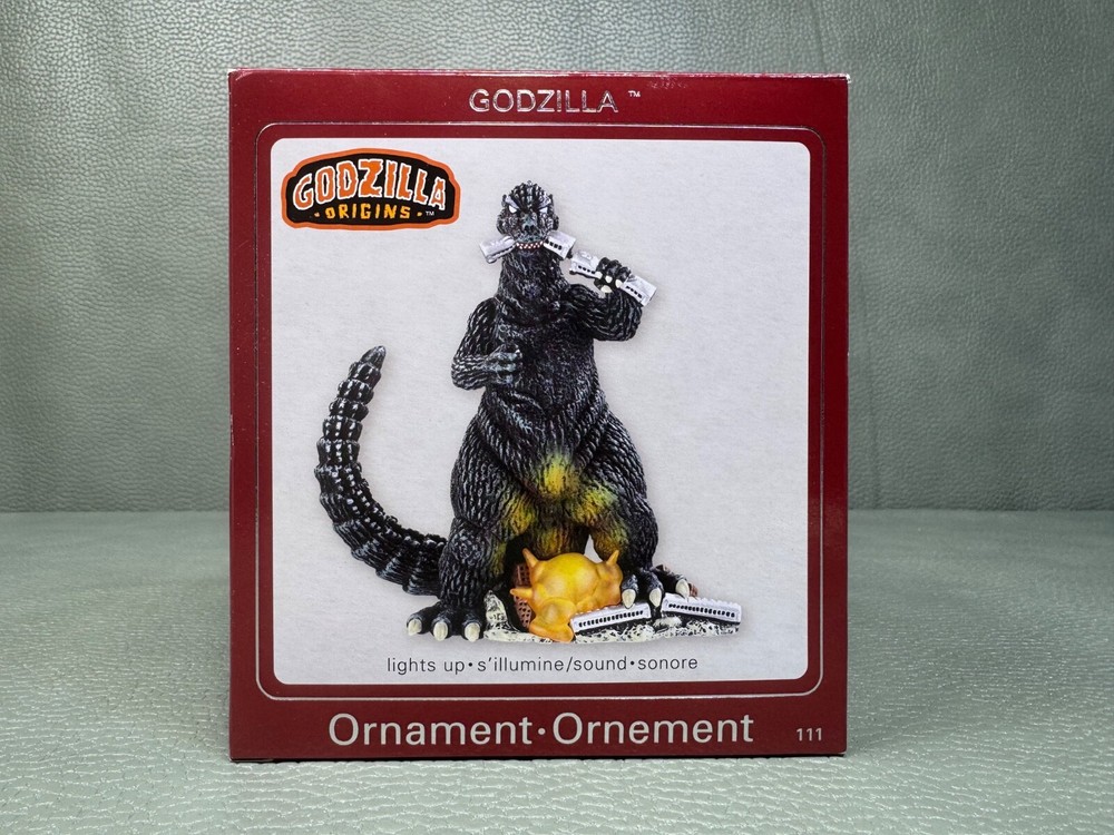 We have 100's of Christmas Ornaments so please view our other selections. Brand New.............Carlton Cards Heirloom Collection Godzilla Christmas Ornament with Light and Sound.....Model #111........ fresh batteries may be needed Free shipping