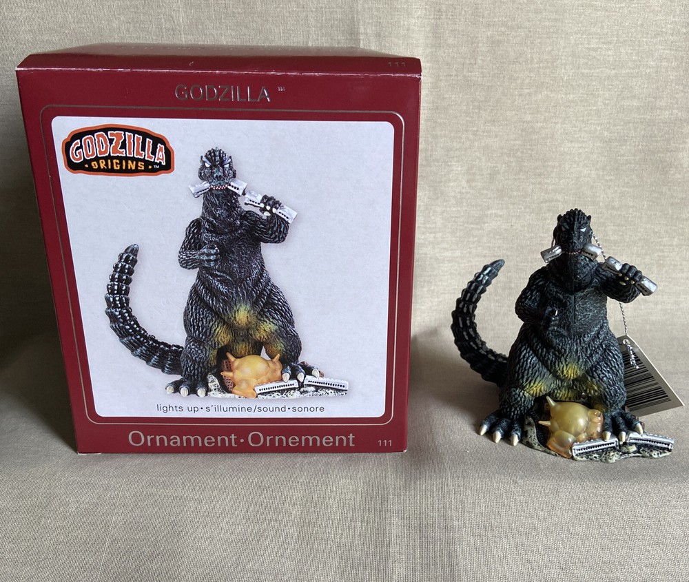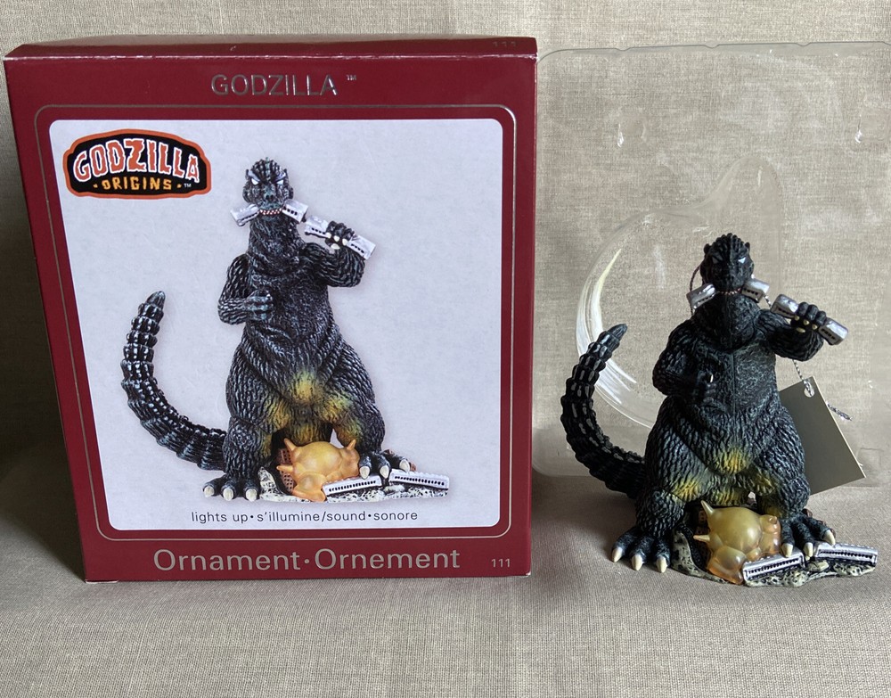 Carlton Cards: An American Greeting Company Heirloom Ornament Collection: Godzilla Origins # 111 "Godzilla" (Sound & Light Pieces) Press fin for roars and light up explosions. Batteries NOT included. Box is opened. Ornament is new with tag NWT. Top of box is creased / dented. Vintage 2009. Toho Licensed. Kaiju. Please view the provided photos and ask any questions.