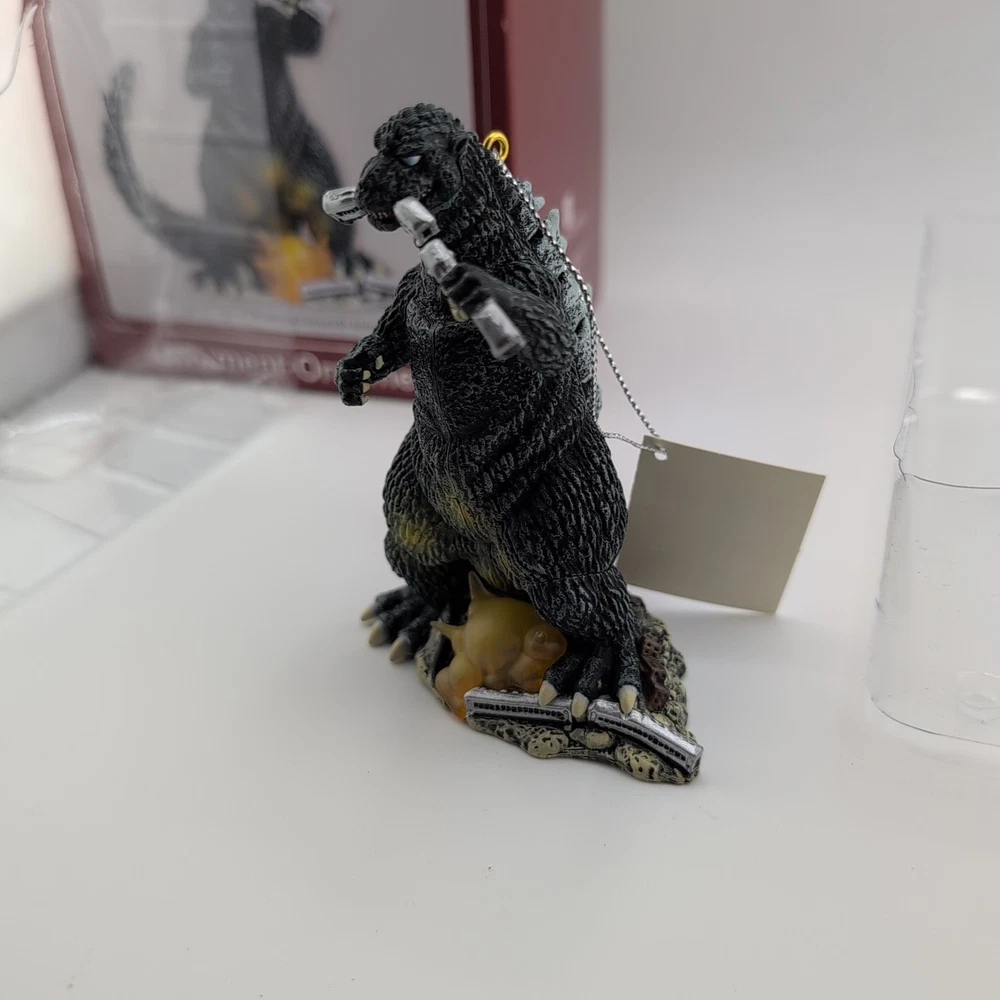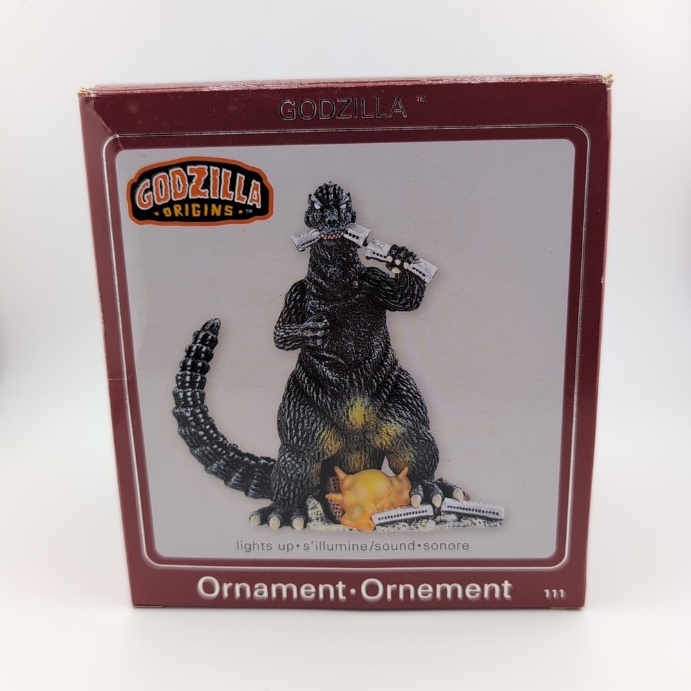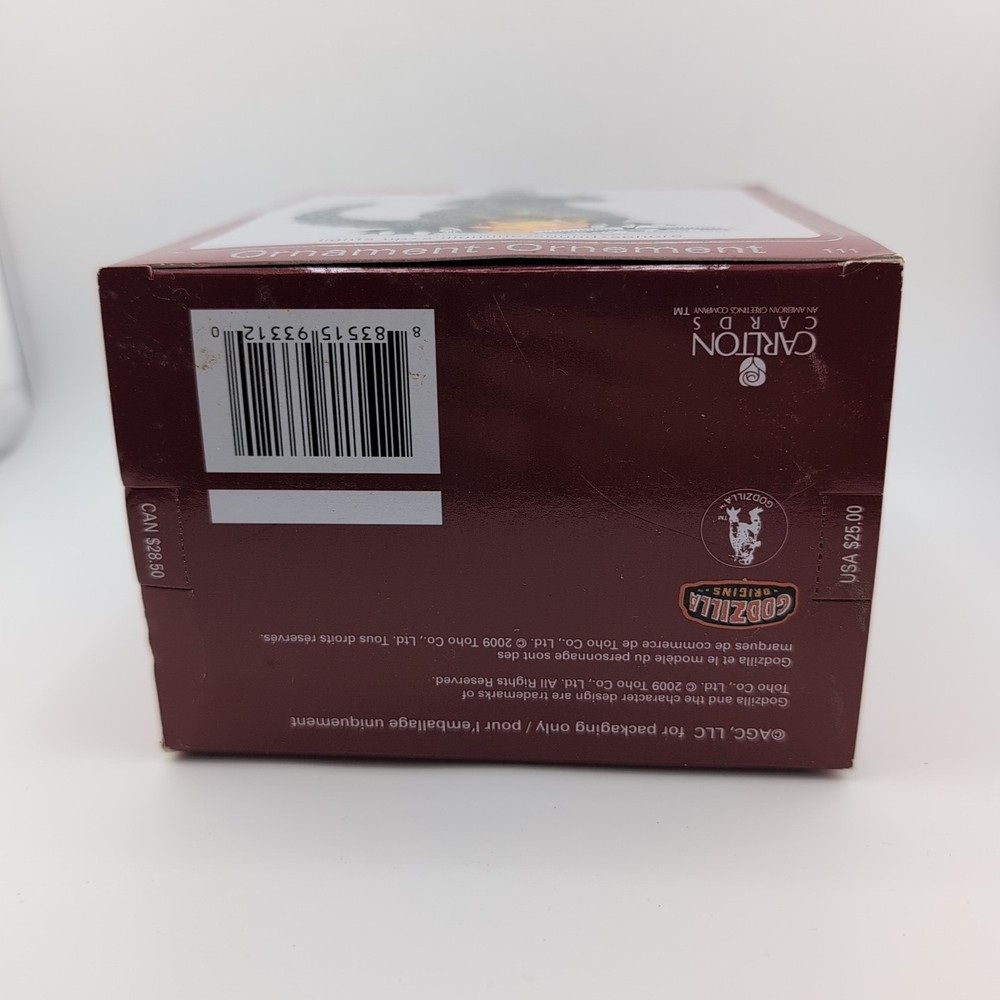 The Carlton Cards Heirloom 2009 Godzilla Origins Ornament is a vintage collectible featuring the iconic character Godzilla. This artist-designed ornament lights up and plays sound, adding a unique touch to any Christmas tree. Made of plastic and manufactured in 2009, this ornament is part of the Heirloom Ornament Collection by American Greetings, perfect for fans of the Godzilla franchise and collectors of holiday decor. The multicolor design and retro appeal make it a standout piece for any festive celebration.