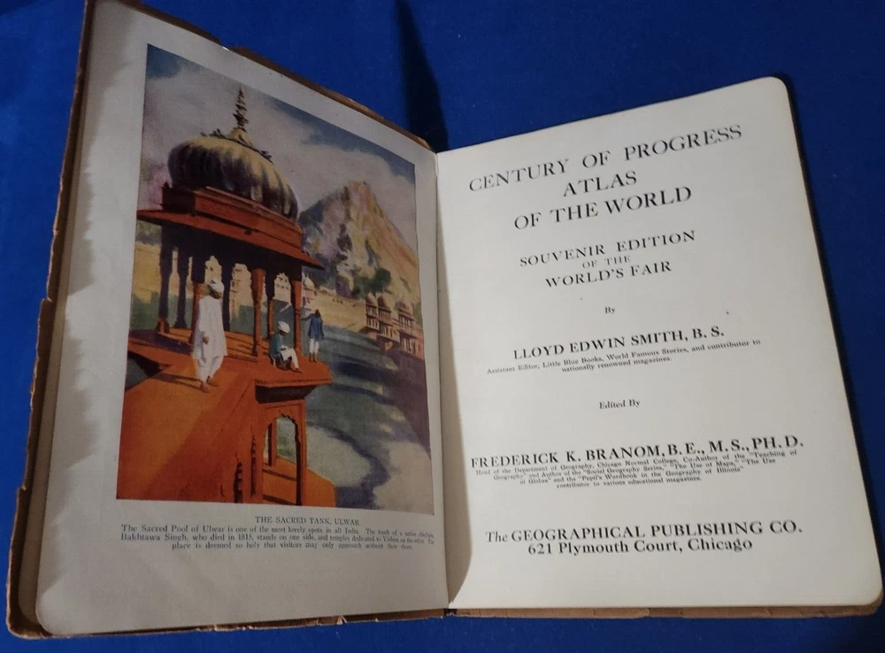 Century Of Progress Atlas of The World - Souvenir Edition Of The World's Fair Copyright 1933 The Geographical Publishing Co, Chicago. Please See Item Condition & Pictures For More Details. AS-IS. No Returns. No Refunds. Smoke Free Home. Feedback Always Given After Feedback Received. Thank You For Visiting & Have A Great Day!!!