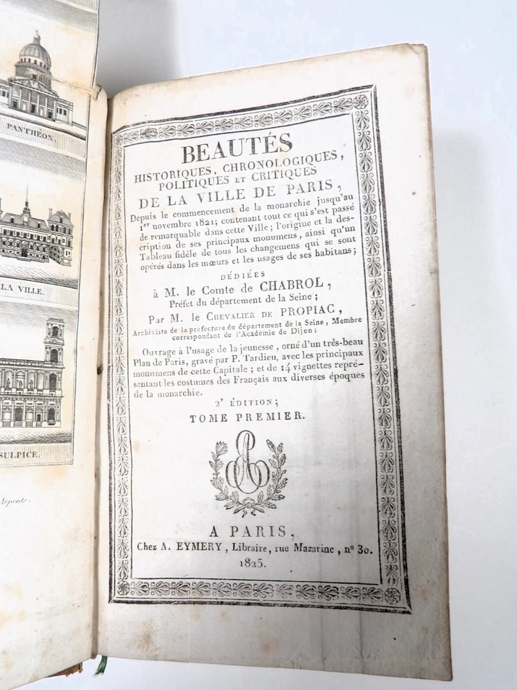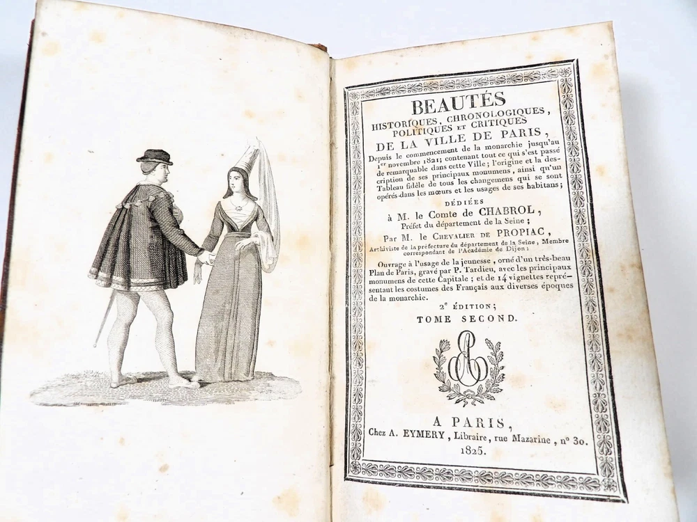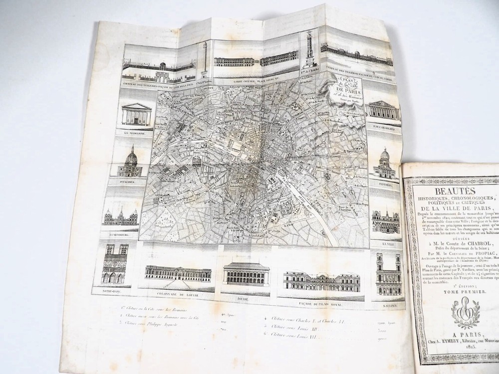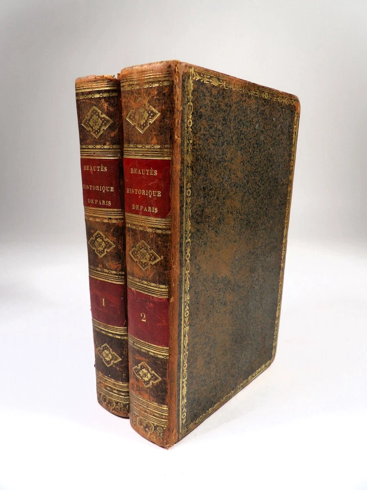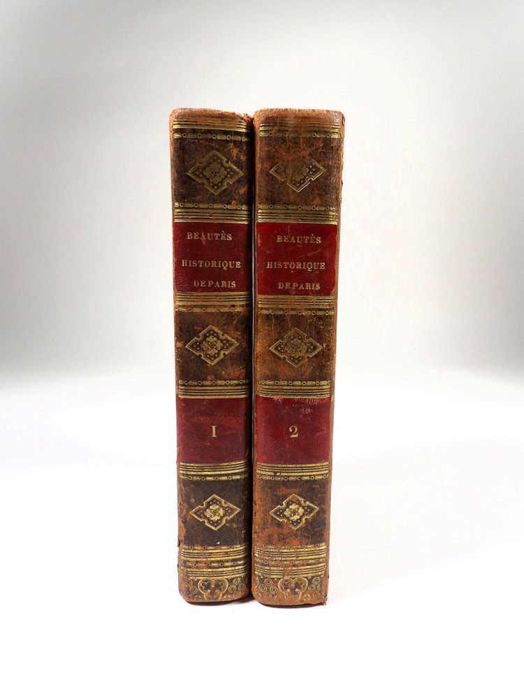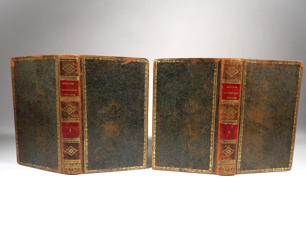 Please consult the conditions of sale at the end of the description before purchasing. CHABROL. Historical, chronological, political and critical beauties of the city of Paris. Paris, Eymery, publisher, 1825. 2 Volumes, complete. In-12 - 10.5 x 17.5 cm. Contemporary binding in full speckled calfskin , smooth spine decorated with fillets, small irons and gilded lace, title and volume number pieces in burgundy shagreen, lace and double gilt fillets framing the covers, gilt fillet on the cuts, marbled edges. 4f., 376pp. ; 2f., 447pp. 2nd edition. Complete with its folding plan and its 14 inset plates. Small traces of friction on the bindings, foxing, otherwise good copy. ___ Bookstore L’Art et la Manner 19 Route de Pithiviers 45300 BOYNES France Member of SLAM and LILA ( National Union of Ancient and Modern Bookstores / International League of Old Booksellers) ILAB (International League of Antiquarian Booksellers) English spoken Please don't hesitate to contact us if you have any inquiry The greatest care is taken in the description of the works, however, unintentional errors may be made. Do not hesitate to inform us, including after receipt of your purchase. Regarding shipping: The choice is yours! So that you can benefit from the best services and the most advantageous quality/price ratio, the bookstore offers you: Hand delivery by appointment, in Boynes, near Pithiviers, or in Paris on Saturday mornings or during old book fairs. Sending by the Post Office : by letter for folds less than 3 cm thick (packaging included) or by colissimo. Deposit in Relay Point . The bookstore practices group shipments . If you make multiple purchases in our store, u A new claim for payment with adjusted postage costs will be sent to you within a maximum period of 24 hours . THE insurance is optional (option not available for Relay Point shipments). For shipments to Overseas , please contact us beforehand to find out the exact amount of postal costs. Although packaging costs are offered, packages are reinforced and prepared with great care. The Librairie l'Art et la Manière is always on the lookout for rare and old works, to purchase individually or in batches. We travel primarily in Loiret (45), Paris (75) and the south of Ile-de-France (91, 77, 78, 92, 94) as well as in Yonne (89) and Eure-et-Loir (28). If you would like to sell some, do not hesitate to contact us. Just type “Librairie l’Art et la Manière” into your favorite search engine! Contemporary binding in full speckled calfskin, smooth spine decorated with fillets, small irons and gilded lace, title and volume number pieces in burgundy shagreen, lace and double gilt fillets framing the covers, gilt fillet on the cuts, marbled edges. The bookstore practices group shipments. If you make multiple purchases in our store, uA new claim for payment with adjusted postage costs will be sent to youwithin a maximum period of 24 hours. The Librairie l'Art et la Manière is always on the lookout for rare and old works, to purchase individually or in batches. We travel primarily in Loiret (45), Paris (75) and the south of Ile-de-France (91, 77, 78, 92, 94) as well as in Yonne (89) and Eure-et-Loir (28). If you would like to sell some, do not hesitate to contact us. Just type