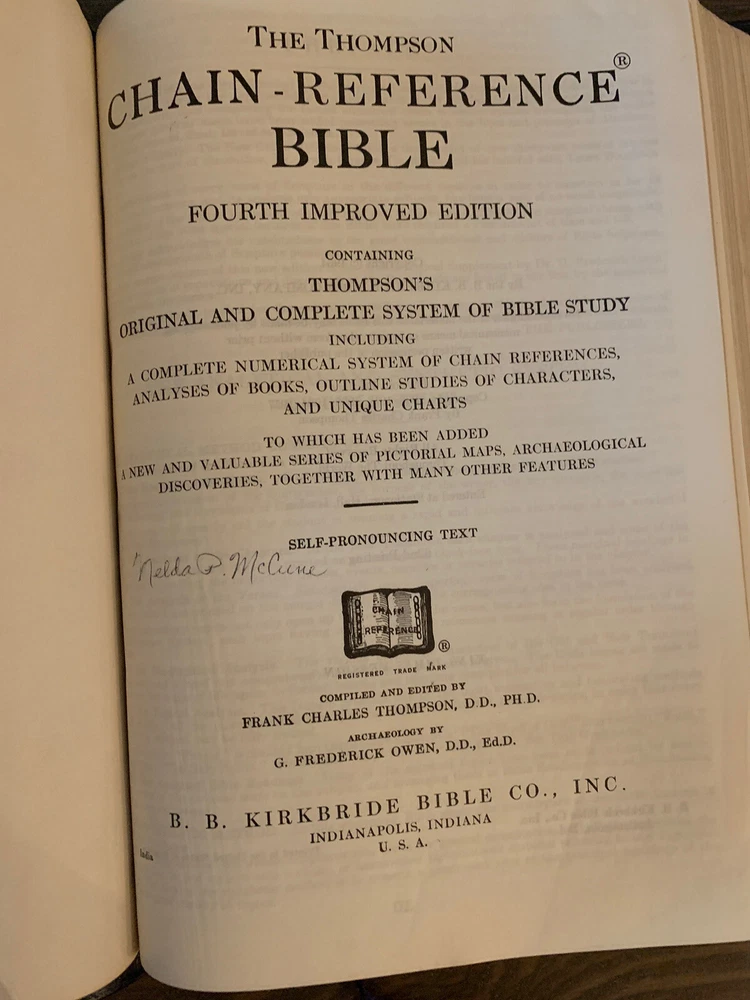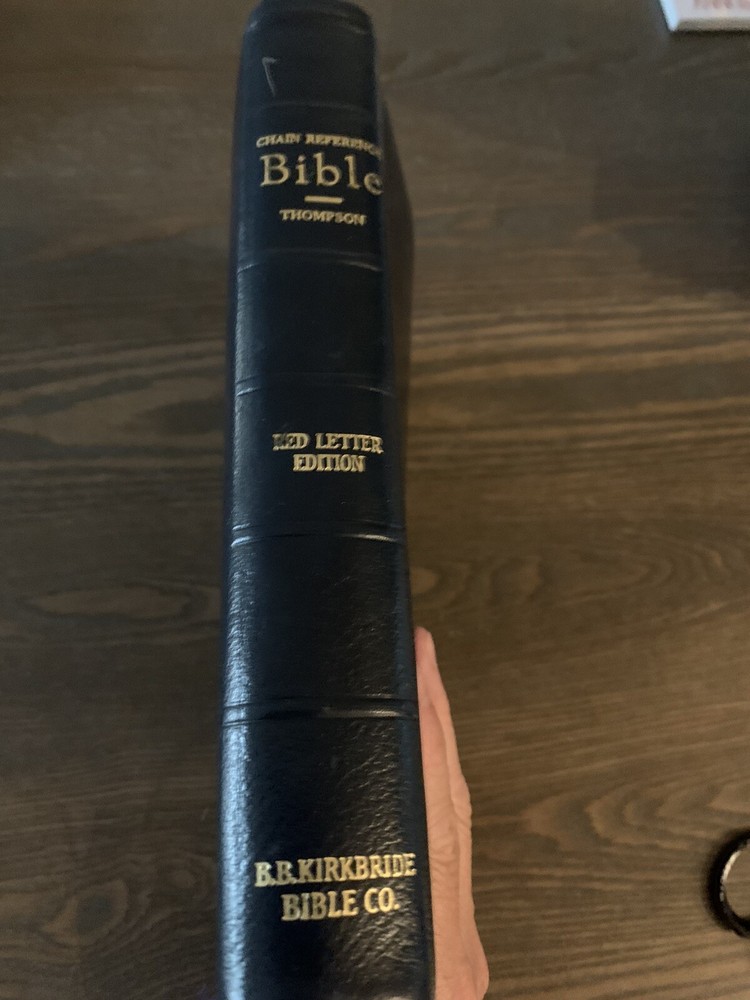 Chain Reference Bible KJV Thompson 1964 Bonded Leather Lined Kirkbride Black. See photos for condition There is a page torn out at the front There is some writing but not at all extensive throughout...