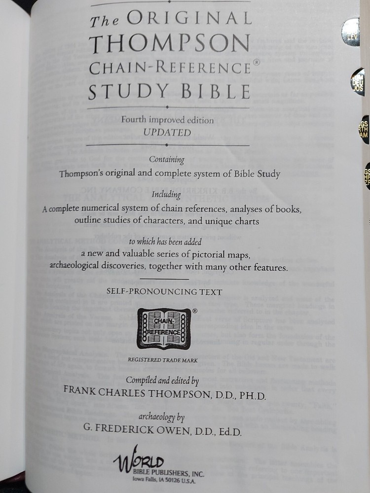 Dive into the depths of faith and knowledge with the "Chain Reference Bible- Red Leather Edition." Published in 2002 by World Bible Publishers, Inc., this Bible is a treasure trove of spiritual wisdom, tailored for both adults and young adults seeking a comprehensive guide to religious teachings. The Bible comes encased in a sleek faux leather binding, offering both durability and elegance. With 1606 pages, this nonfiction piece is not only a spiritual compass but also a valuable reference for anyone interested in the Bible. It is personally tailored with features that enhance the reading experience, and while it is a modern edition, it retains the classic charm that has been cherished over the centuries.