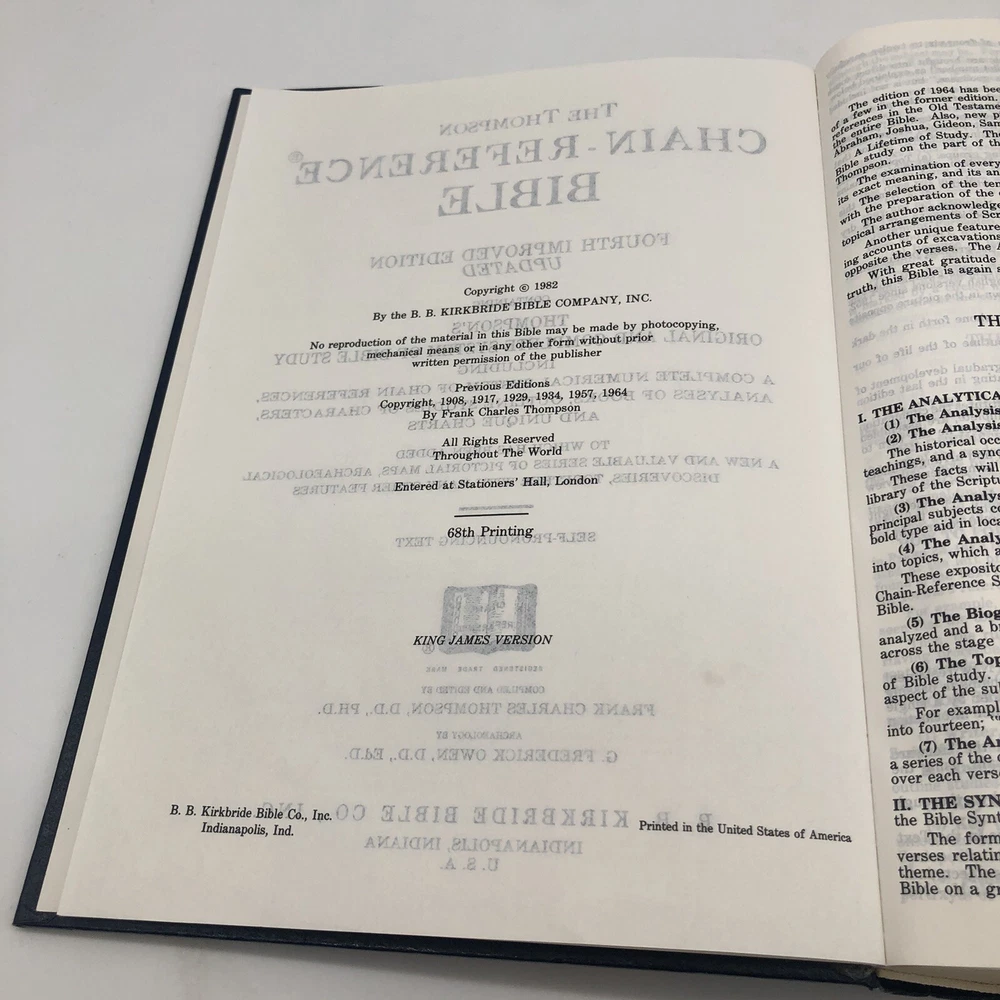 Chain Reference Bible Thompson 1982 Genuine Leather ~Red Letter 4th Improved Ed. Condition is "Good". Has some yellow highlight on print. King James Version. 68th printing. Shipped with USPS Media Mail.