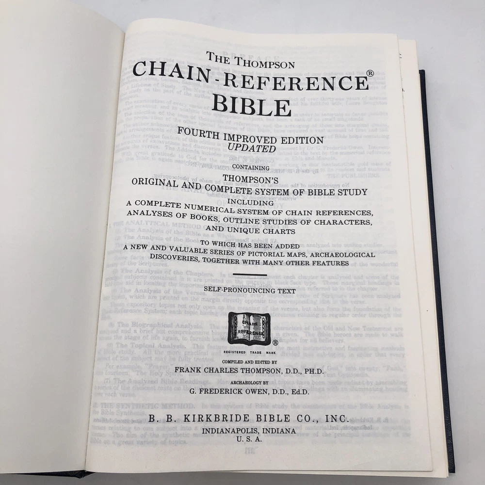 Chain Reference Bible Thompson 1982 Genuine Leather ~Red Letter 4th Improved Ed. Condition is "Good". Has some yellow highlight on print. King James Version. 68th printing. Shipped with USPS Media Mai...