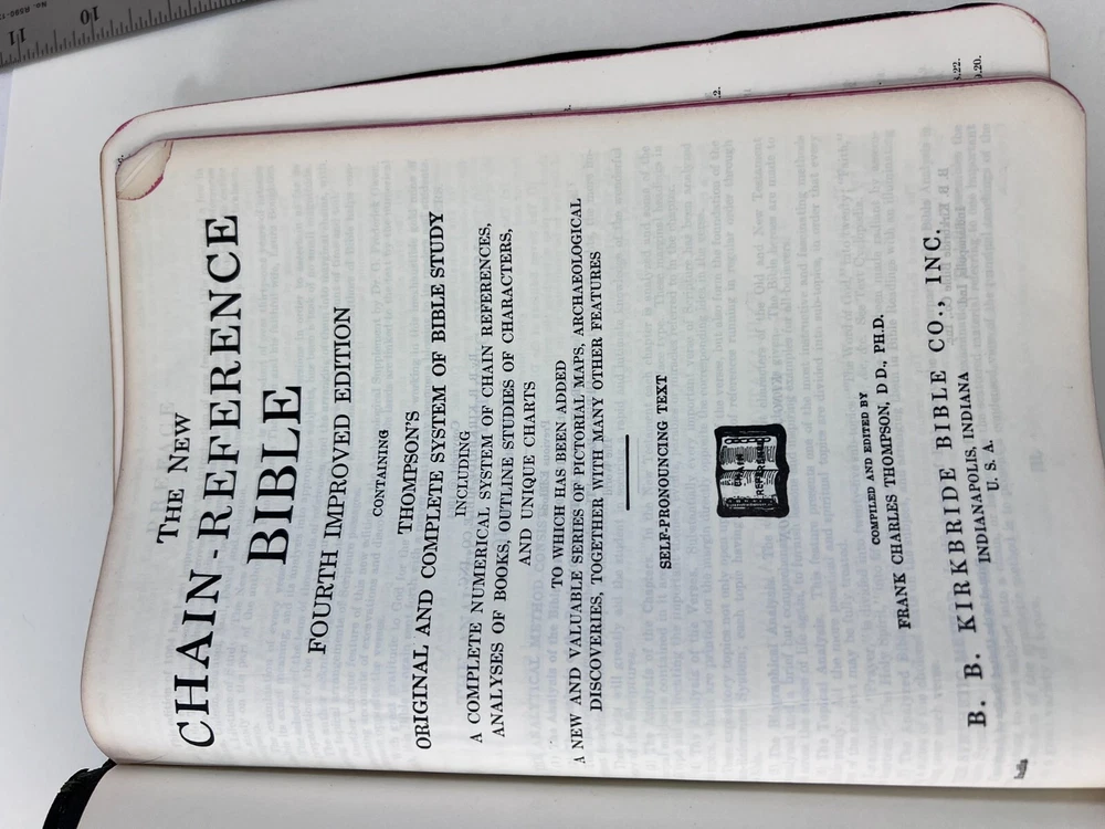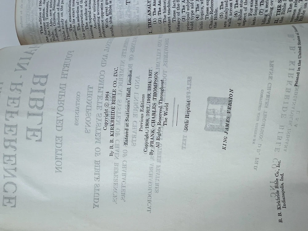 Description Chain Reference Bible Thompson B.B. Kirkbride 1964 Leather VTG Self Pronouncing Very Nice ~ Vintage ~ Clean Pages Payment Payment is expected within 48 hours of auction close. If payment is not received within that time, the item may be relisted. Shipping We ship within three business days after receipt of payment via USPS and UPS. Terms of Sale Every effort is made to accurately describe merchandise, including even the most minor flaws or wear due to age. Most of what I sell is vintage and many times will show normal wear due to age and use. I am not an expert, but do my best to describe items honestly and to the best of my knowledge. I strive to have your purchase not only meet, but exceed your expectations. Be sure to check my positive feedback rating. If you have any doubts or reservations, please ask questions before bidding. Your complete satisfaction is my goal. If I fail to achieve this, please contact me. Thanks for looking and bid with confidence! About Us Most of the items that I sell come from estate sales, thrift stores, or public auctions. Please do not assume that I am an expert on the items I sell or that I know what to put in my descriptions. I do my best to describe the items, and I strive to point out any known defects. I do not clean or repair my items, but I will mention if they were tested or not. My items are sold "as is" and "as found". All sales are final unless my description is grossly misrepresented.