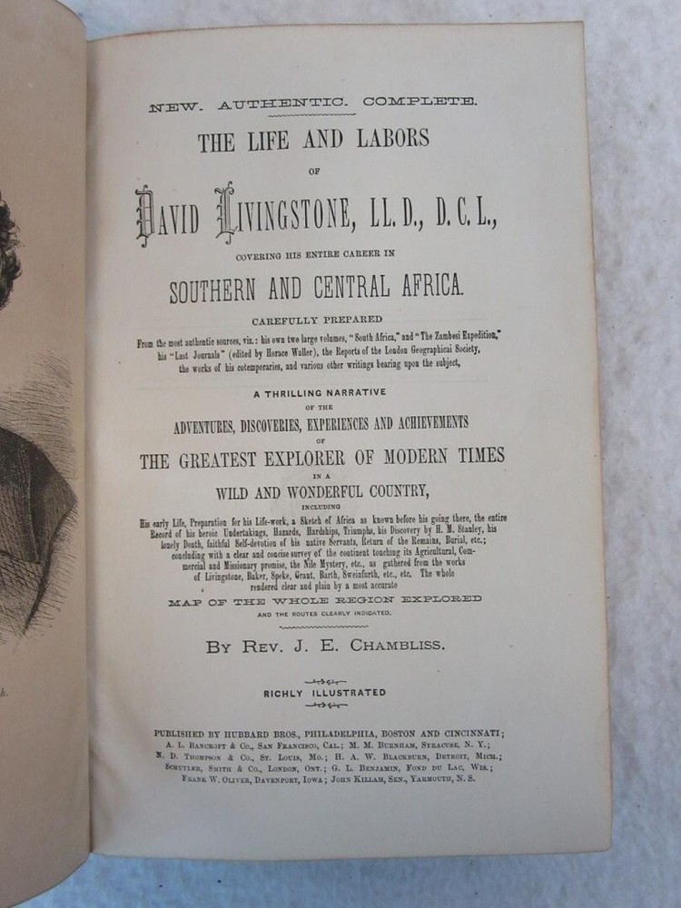 Rev. J. E. Chambliss THE LIFE AND LABORS OF DAVID LIVINGSTON Covering His Entire Career in Southern and Central Africa 1875 Hubbard Bros. w/Map In good condition with wear to hinges along spine. Please examine photos for details. Condition: We strive to describe and photograph the condition of every item as accurately as possible. Photos are of the actual item that is being sold. Please examine the photos carefully for any condition details and possible flaws. Best Offers: We consider all offers in relation to current market values. We try to respond almost immediately to most offers. Most of our counteroffers are firm but we are open to bargaining. Shipping: We combine shipping. When ordering multiple items from us please request a total before paying. We charge postage based on weight plus $1 for each eBay listing. All of our orders are packed carefully to prevent damage during shipment. We ship most of our items within 24 hours. Contact Us: We are available 7 days a week and are happy to answer any questions you may have. THE simple solution for eBay sellers.