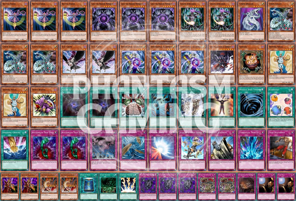 Deck Name: Chaos Control (Lightsworn) (A) # Main Deck (40) 3 - Battle Fader 3 - Caius the Shadow Monarch 2 - Chaos Sorcerer 1 - Cyber Dragon 3 - Cyber Valley 2 - D.D. Crow 3 - Dimensional Alchemist 1 - Gorz the Emissary of Darkness 1 - Sangan 2 - Shining Angel 1 - Spirit Reaper 2 - Allure of Darkness 1 - Brain Control 1 - Heavy Storm 1 - Machine Duplication 1 - Mind Control 1 - Mystical Space Typhoon 1 - Scapegoat 1 - Smashing Ground 2 - Bottomless Trap Hole 1 - Call of the Haunted 1 - Dust Tornado 1 - Mirror Force 1 - Return from the Different Dimension 1 - Solemn Judgment 1 - Torrential Tribute 1 - Trap Dustshoot # Side Deck (15) 2 - Breaker the Magical Warrior 2 - Fusilier Dragon, the Dual-Mode Beast 1 - Book of Moon 1 - Giant Trunade 1 - Lightning Vortex 3 - Eradicator Epidemic Virus 2 - Royal Oppression 1 - The Transmigration Prophecy 2 - Trap Hole You will receive all of the following cards listed above. Most cards will will be in near mint condition. In the case of certain older cards we will do our best but some cards may be light or even moderatly played in extreme condtions. Those conditions being the card has not been reprinted in a number of years and con no longer be easily purchased in light or near mint condition. Set, Rarity, and Edition will vary and cannot be special requested. These lists are constructed with least expensive rarities we have available in stock. All cards are play legal copies. Note: If purchasing a Yugioh Deck all Speed duel cards are 100% legal at all levels of play. Store Policies Here at PMG_LLC , we pride ourselves on having the best customer service around. If you have any questions or can't seem to find something that you want please do not hesitate to contact us. We will do our best to respond to all questions within one business day. Hours of Operation: Monday-Friday: 2:30pm - 10:00pm Saturday- 10:00am - 8:00pm Sunday 11:00am - 5:30pm Note: We are closed all national holidays. Info: Thank you for choosing PMG_LLC . We appreciate your business. We ship Monday through Friday to make sure you get your deck as quickly as possible. All orders priority orders can use combined shipping. In order to use the combined shipping your whole purchase needs to be checked out as one order. We ship once we have received your payment and payment has cleared. As always if you have any questions or concerns please feel free to contact us via email. Shipping Information: We ship Monday through Friday, barring national holidays during which the United States Postal Service is closed. If you purchase a card on Friday or Saturday please bear in mind it will not ship until Monday. US Shipping: First Class Mail : Free. Comes with tracking information. Priority Mail with Delivery Confirmation : $9.99 All orders are shipped in appropriate protective material inside bubble mailers. International Shipping: We do not offer international Shipping Return Policy: You must return items sold and fulfilled by PMG_LLC within 30 days of delivery to be eligible for a refund. Returns which are damaged in the mail due to improper return packaging will receive partial refunds. We will process a full refund for all items returned in their original condition. In order for us to process your full refund you must include the full name associated with the order as well as the eBay order number inside the return packaging. We will not process returns which do not include the buyer's name and order number. Requirements: Please return items with the original plastic packaging. Failure to do so may result in a partial refund. Also you must inform us of any returns you may wish to process before sending them back. Any items simply send back to us without prior contact will not be eligible for refunds. Important Notes Remember that to benefit from our domestic combined shipping on priority orders you must to pay in a single payment. If you place two separate priority orders you will be charged the $7.50 shipping fee for both orders. If you place multiple orders for Priority shipping you will be charged the corresponding shipping costs for each order, even if you place the orders on the same day. We do not refund shipping costs as we tend to package orders throughout the day and may not notice that you would otherwise have qualified for combined shipping. We want to provide you with 5 Star service and earn your Positive Feedback, so if for any reason you are not happy with your transaction, contact us before leaving feedback. Business Day - Our business day runs from Monday to Friday from 9am to 4pm, excluding US national holidays. Any orders placed or payments cleared less than 4 hours before the close of business will be considered orders from the following business day.