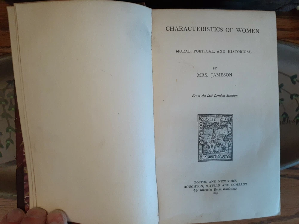 "Jameson's Works Characteristics of Women; Moral, Poetical, and Historical" by Anna Jameson is a biographical and perspective account of various women throughout the social spectrum with short stories and poems. This edition from the last London Edition was published by Houghton and Mifflin, and Co. in Boston and New York in 1891, and is SCARCE with decorative marbled leather binding, boards, endpapers, and edges. Please check all the photos for additional details and ask questions anytime and please make my store one of your visits as you will find an expanding inventory of many genres of antiquarian and vintage books. Also note that I take pride in the customer service provided so expect that what I say about a book is what you will get! Shipping response times usually have a quick turnaround with very carefully packaged books! Please be sure to keep visiting for any updates! If you'd like to make an offer, please message me through ebay only! Condition: VG(Very Good)-Covers and binding have some partial splitting on the front of the spine along with corner bumps, scuffs, and abrasions. Boards and endpapers have a few frays and border scuffs with the 3rd endpaper from the front board detached(does not detract as its plain white). However, covers, boards, binding, and endpapers(except for one mentioned) are fully and firmly intact. Interior pages are mostly off-white with overall great presentation with minor to moderate amounts of foxing!