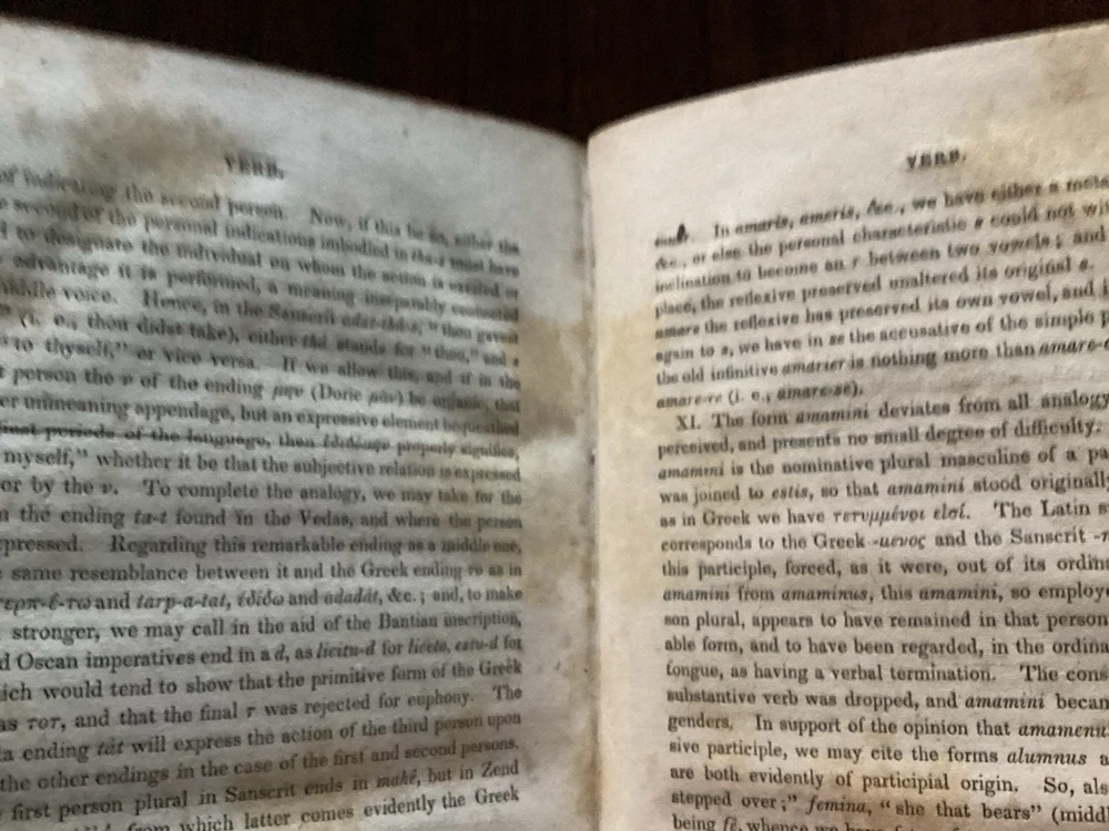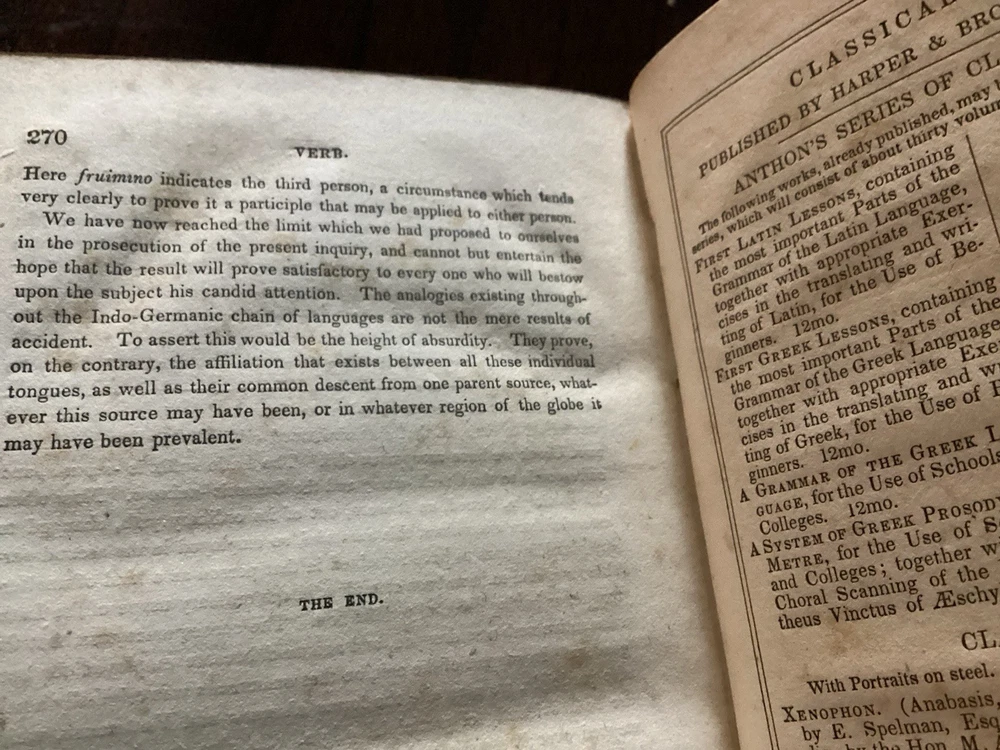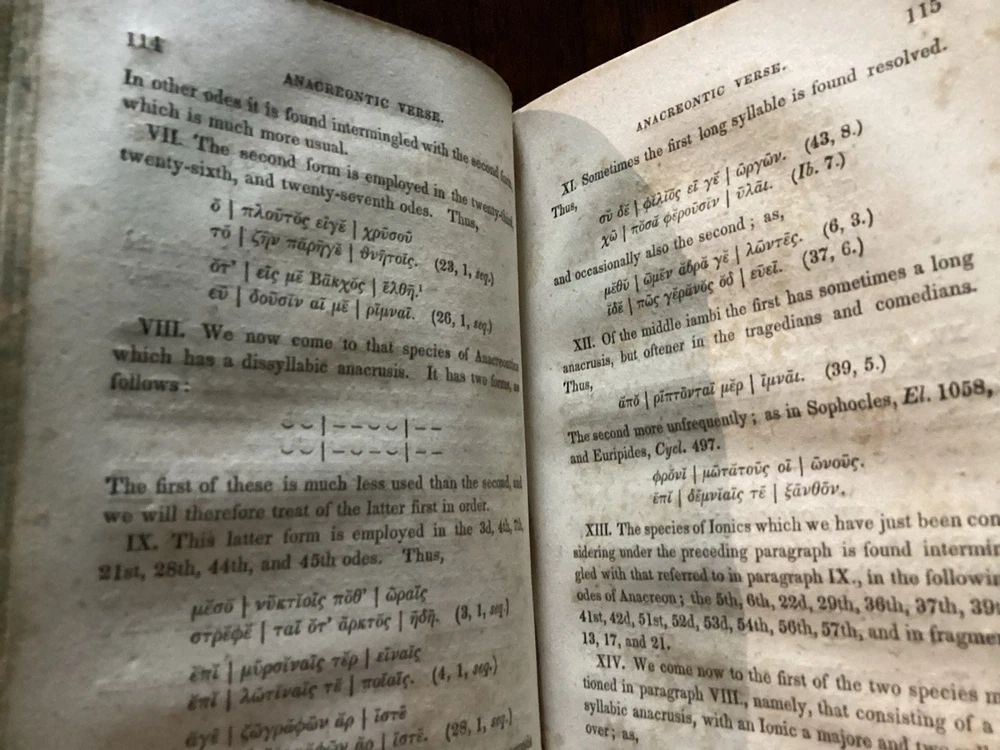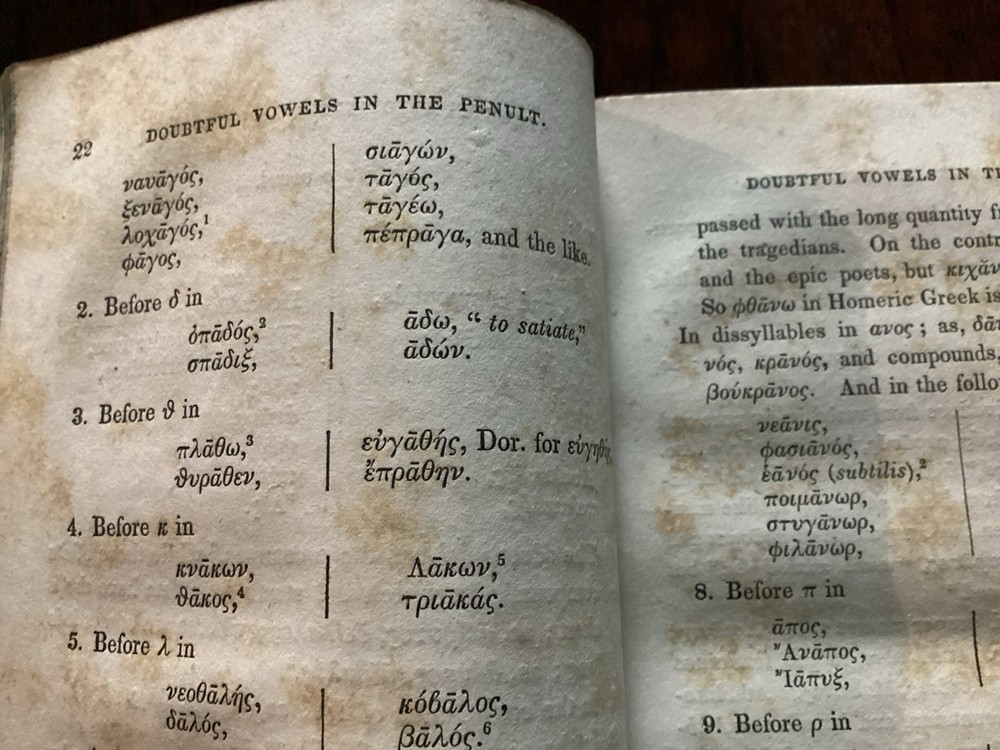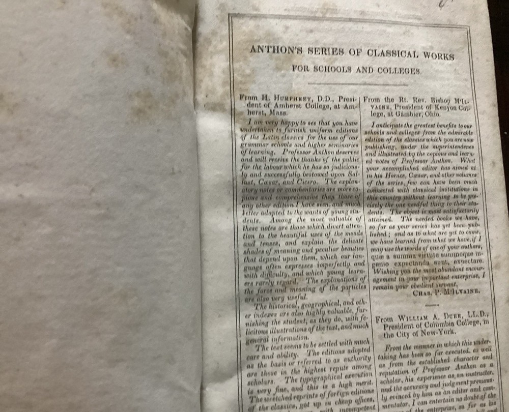 Charles Anton's "A System Of Greek Prosody & Metre" is a rare and valuable first edition book published by Harper & Brothers of Cliff Street, New York in 1839. This leather-bound book, printed in English, is a reference guide focused on language study for schools and colleges, specifically in the area of Greek prosody and metre. Authored by Charles Anton and published in New York, this collectible piece offers insights into the study of Greek language and serves as a valuable addition to any antique book collection. The front leather board is a little warped, as found, and as I am not an antique book dealer, I cannot say if the remedy for that is easy or hard, but hazard a guess in saying, that I am sure it can be ‘cured’. Scuffs on the leather exterior boards, as you can see in the pictures, marbled page edges also shown. No real notations as such , marked in ink on inside front board and then two pencil notations…a price on one page a surname on another, both can likely be erased! 270 numbered pages. I have researched this title and have not found another. This would make a great addition to any collector’s pile of Greek informational, language reference books, or a great addition to a collection of Anton’s books from the same period, looks great just looking at the spine sitting on a bookshelf. Please feel free to make an offer! Thanks for looking!