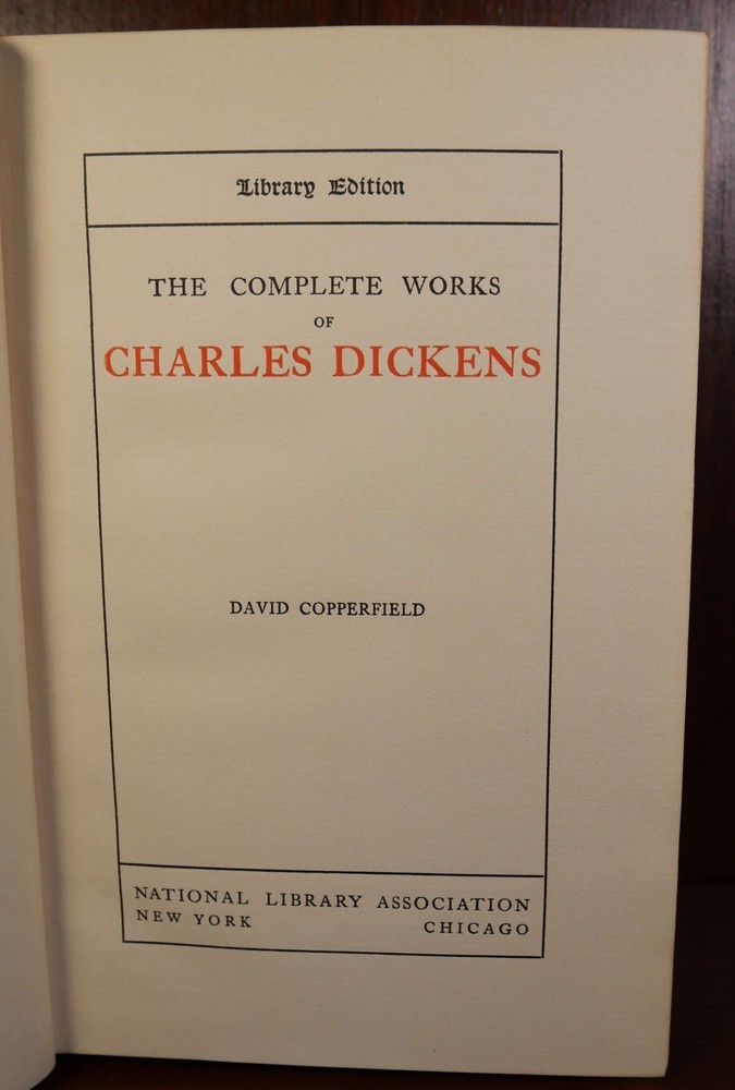 David Copperfield Author: Charles Dickens Title: David Copperfield Publication: New York: National Library Association, c. 1900 Description: Half Bound in Leather. Measuring approximately 8.25" x 5.25" with 506 numbered pages. This book is in good plus condition. Moderate bumping and chipping to both ends of spine. Gilt lettering and design on spine and front board still full and vivid. Minor sunning to bottom and foredge of textblock. Top edge of textblock gilt. Interior pages are bright and clean. David Copperfield is also a partially autobiographical novel. Please view the many other rare titles available for purchase at our store. We are always interested in purchasing individual or collections of fine books. Inventory number (O1-50). Seller ID: 5539 Subject: American Literature , Autobiography/Biography/Memoir Ernestoic Books Terms All orders ship within two business days. Standard mail is USPS Media Mail. Expedited and international shipping are also available. We offer combined shipping on multiple orders. All items are guaranteed to be as described or they may be returned within 30 days of receipt for a full refund. This listing was created by Bibliopolis.