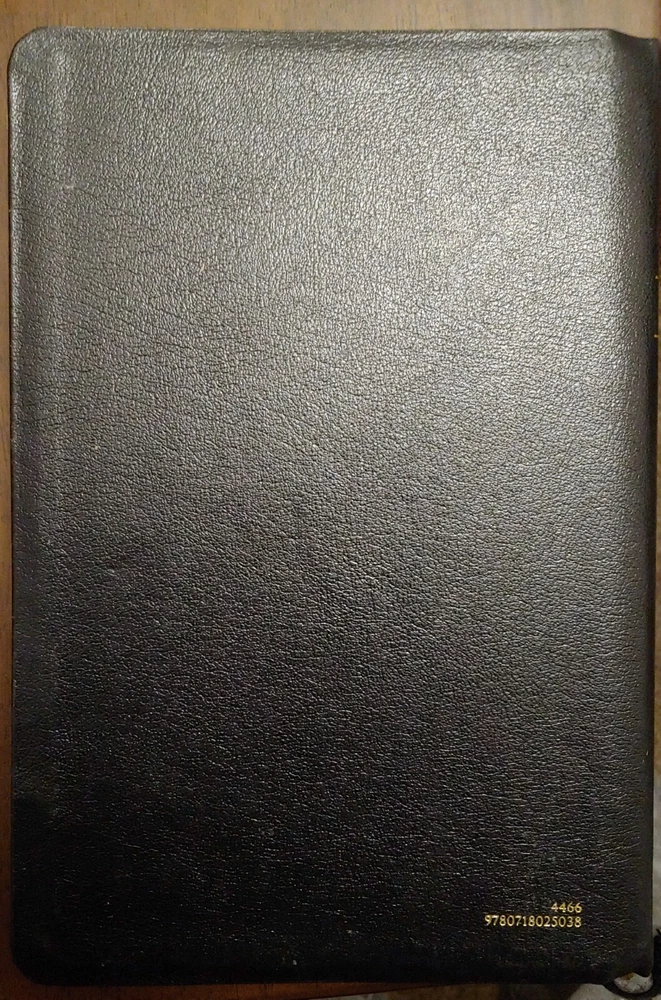 The Charles F. Stanley Life Principles Bible: New American Standard Bible, Black, Genuine Leather Product details Publisher : Thomas Nelson Inc; Updated edition (March 17, 2009) Language : English Paperback : 1539 pages ISBN-10 : 0718025032 ISBN-13 : 978-0718025038 Item Weight : 2.6 pounds Dimensions : 7 x 2 x 10.25 inches Owner's name embossed on front, otherwise Very Good. Covers are excellent and interior pages are clean and unmarked. Spine shows some signs of use but binding is strong.
