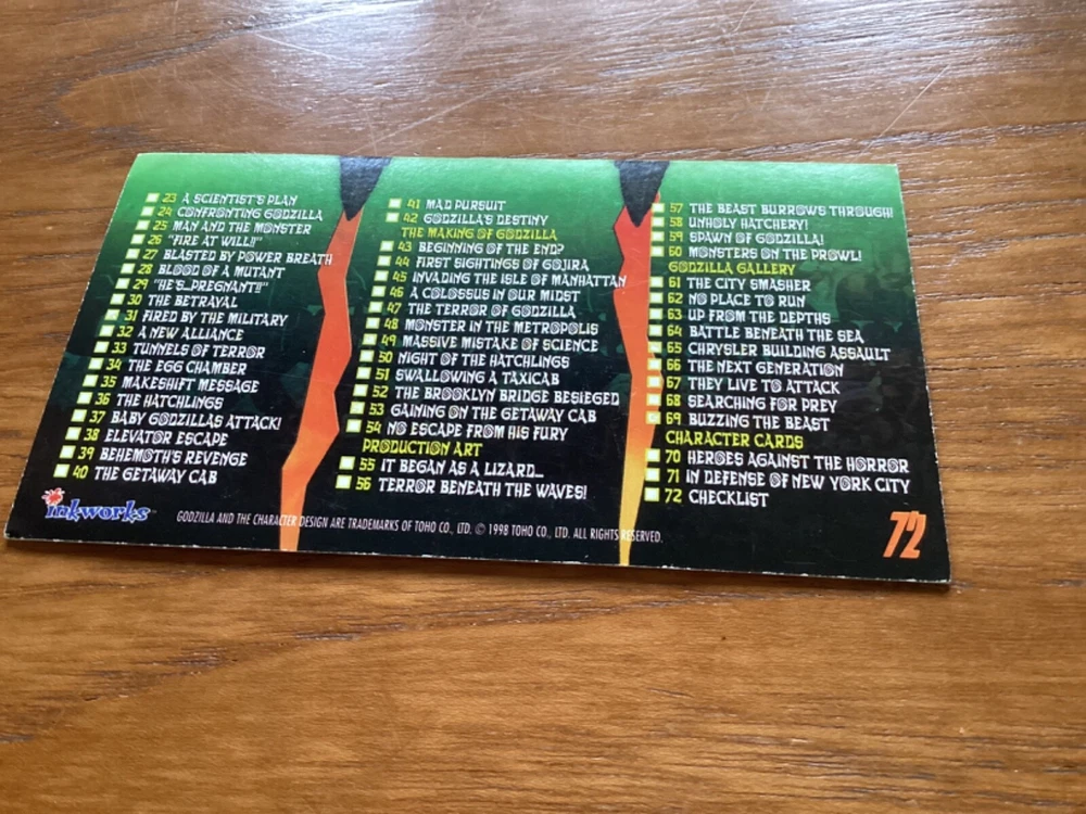 Checklist No 72 Godzilla 1998 Inkworks Supervue Trading Card in. VGC