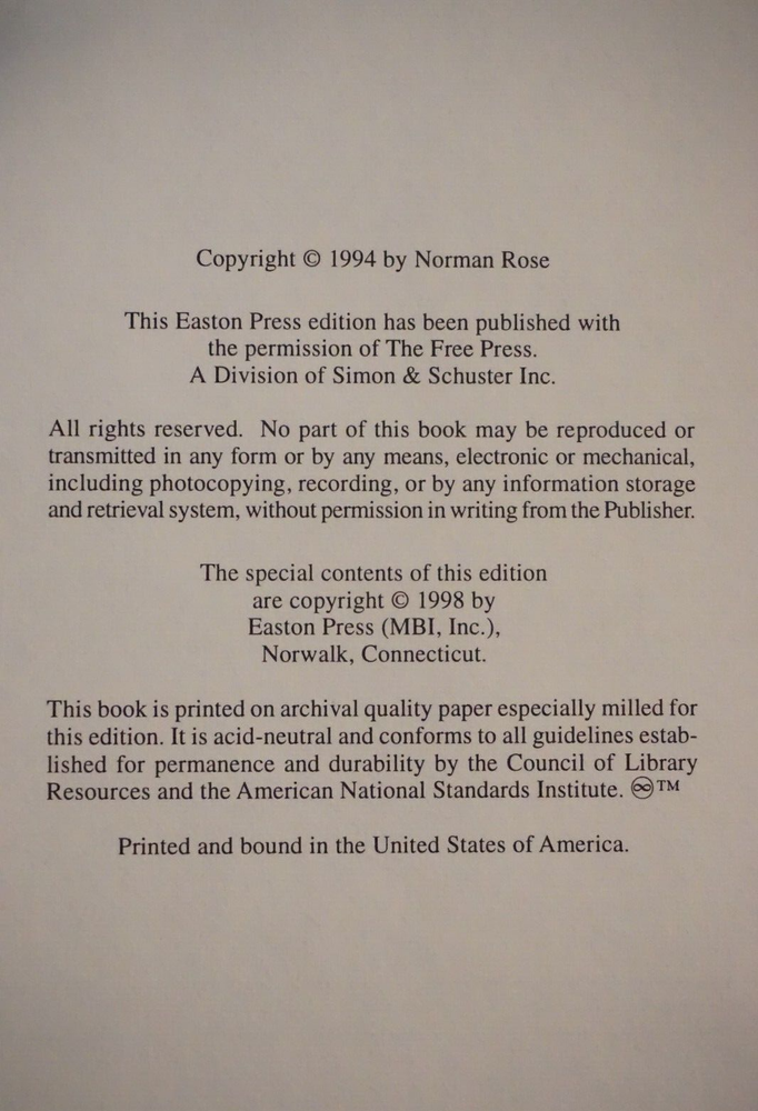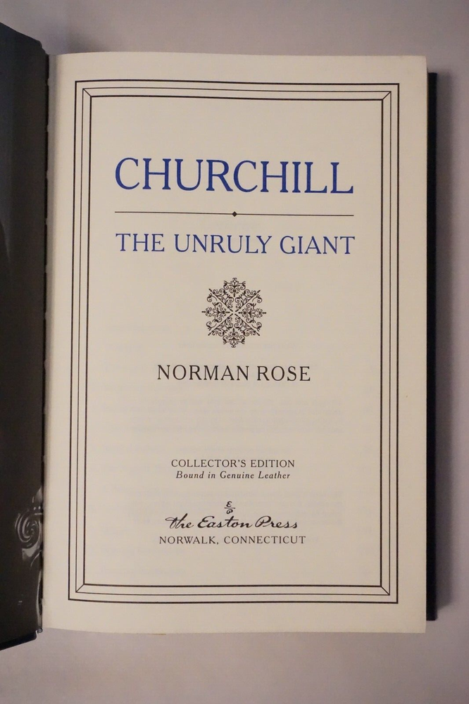 Wonderful copy of Churchill - The Unruly Giant by Norman Rose. Published in 1994 by Easton Press of Norwalk, Connecticut. The leatherbound book is in very good condition for its age, with minimal wear to the cover and edges. Great find at a great price! Please note the S&H charges, which include USPS postage, materials, and handling. View our other eBay listings at Weiss Lane Books! https://www.ebay.com/str/Weiss-Lane-Books